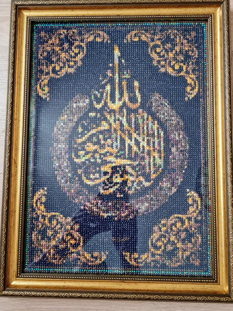 Diamond Painting Allah Muslim Islamic Calligraphy Gold Tapestries Ramadan Mosque Decorative Diamond Mosaic Wall Art
