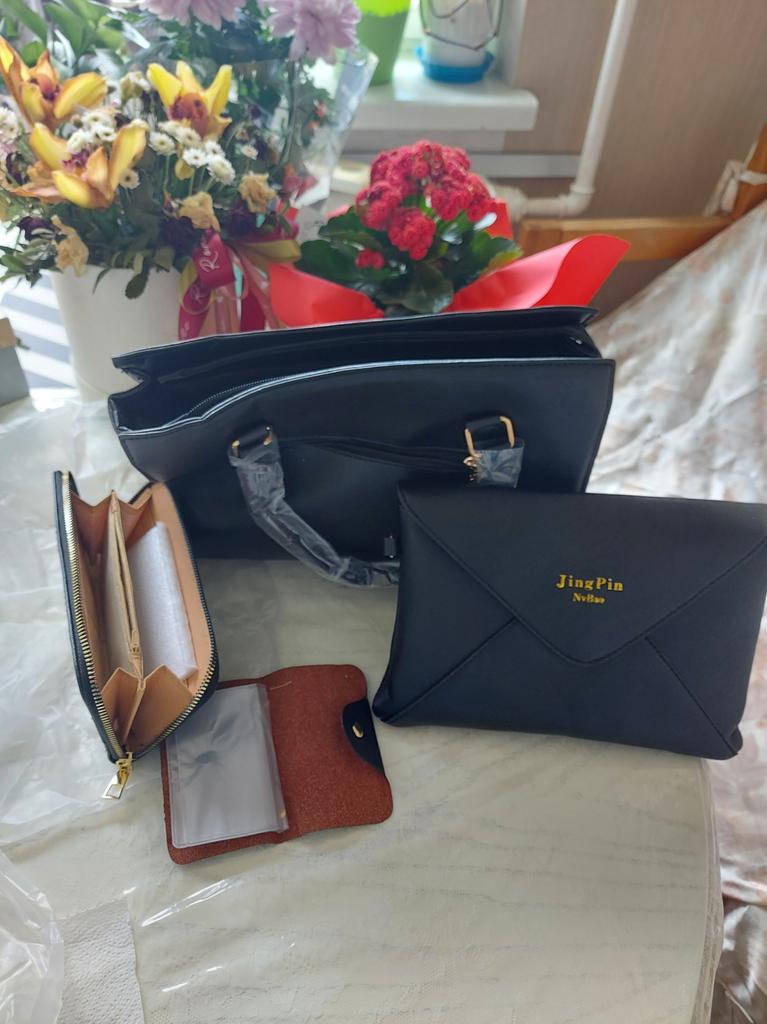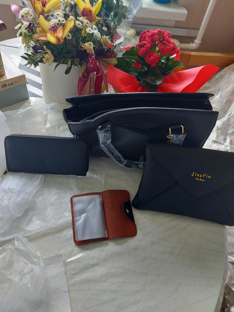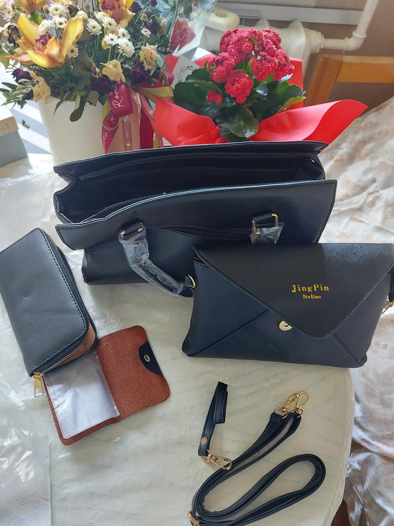 5-piece black bag set for me, received well packaged, consisting of a fairly large bag, a small bag, a wallet, a card holder and a small purse in the shape of a backpack, it's really great