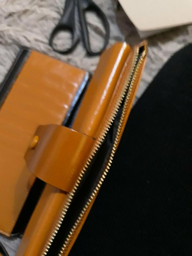 VERY BEAUTIFUL WALLET the leather is beautiful and the color corresponds to the picture, no color deviation ONLY THE ZIPPER CLOSED WITH A LITTLE OIL WORKS GREAT