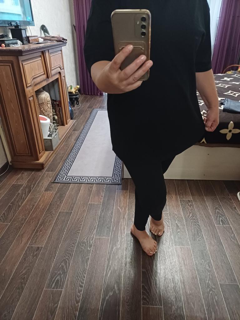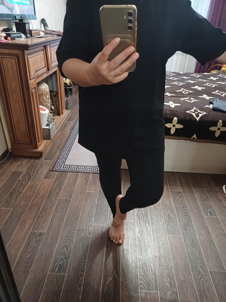 It is an oversize shirt, very long and quite wide. It's the typical one I use in summer when I'm in a hurry, with pants underneath and that's it ππ» Or even to be at home but it can also be worn at other times with pants or leggings underneath as in the other photo that I show you and it can also be worn with a belt, it seems quite versatile. I like the fabric a lot, it's a bit thick t-shirt fabric, it looks good quality fabric. I also really like the way it is worn, other thinner shirts look a bit strange when you put the belt on them and this one still looks good. I also love the sleeves that are very long. It is very comfortable to wear and basic so I plan to use it a lot π