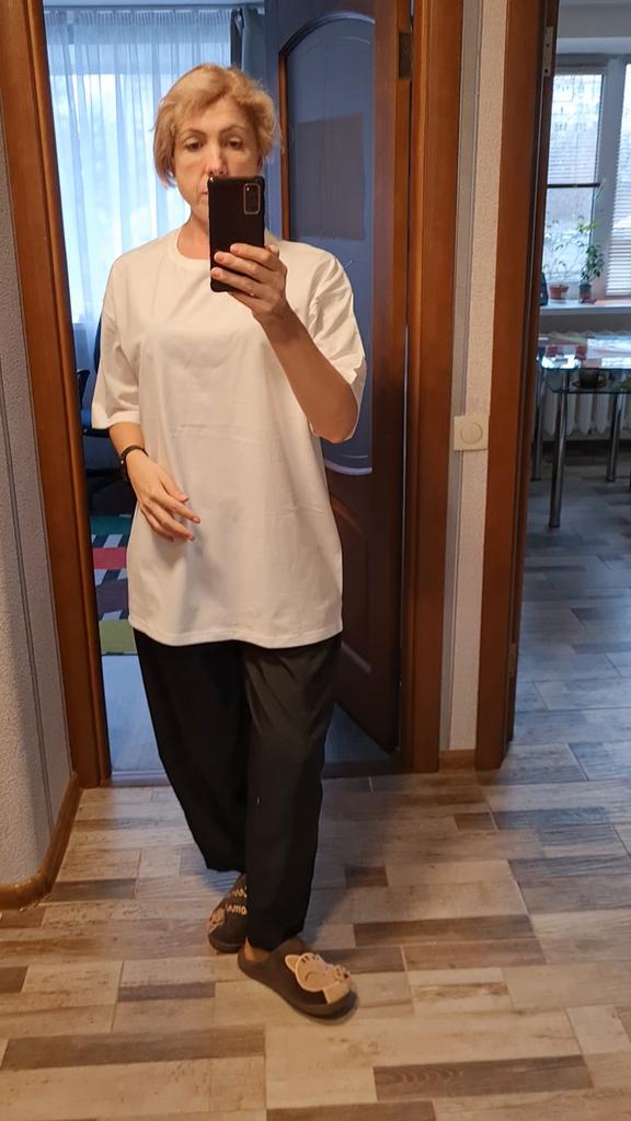 again without expectations and again very satisfied! I wear M, but here it is very oversized, for my 163 as a super dress. but the most pleasant thing is the material. I don't know where else for such a price you can find cotton in t-shirts of such density, unless you can catch mass market at ultra discounts. thank you, I like it both as a dress and as an oversized T-shirtπ