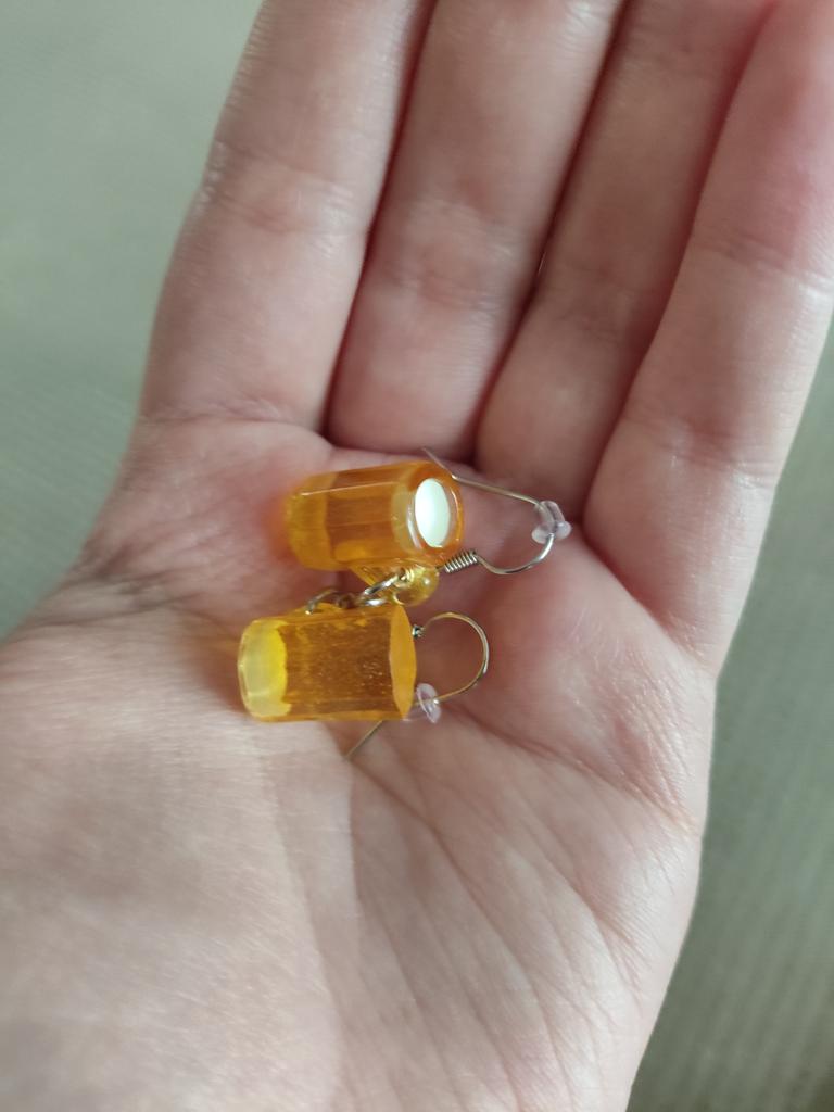 The earrings are very beautiful, delivered on time, very similar to real tangerines, the only difference from the real ones is the chopped bottom + the set includes claspsπππ