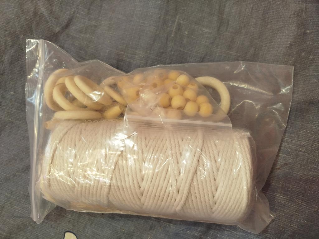 1Set Macrame Cord Cotton Rope With Wood Ring Wooden Beads For Diy Wall Hanging