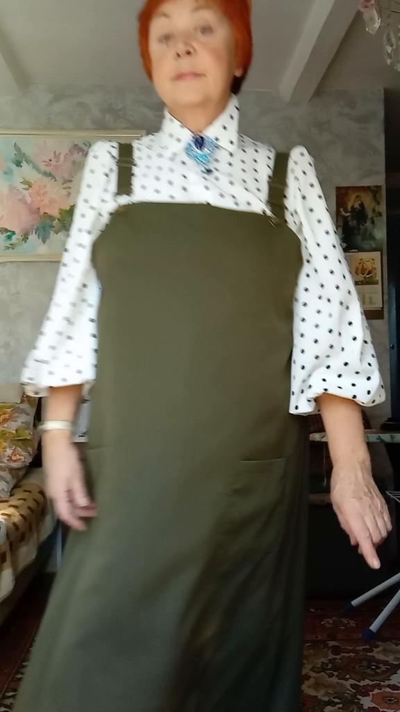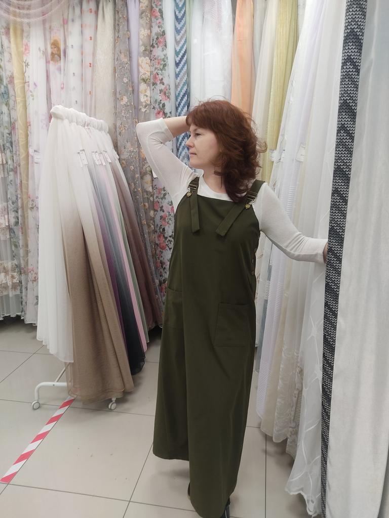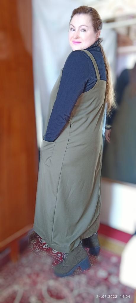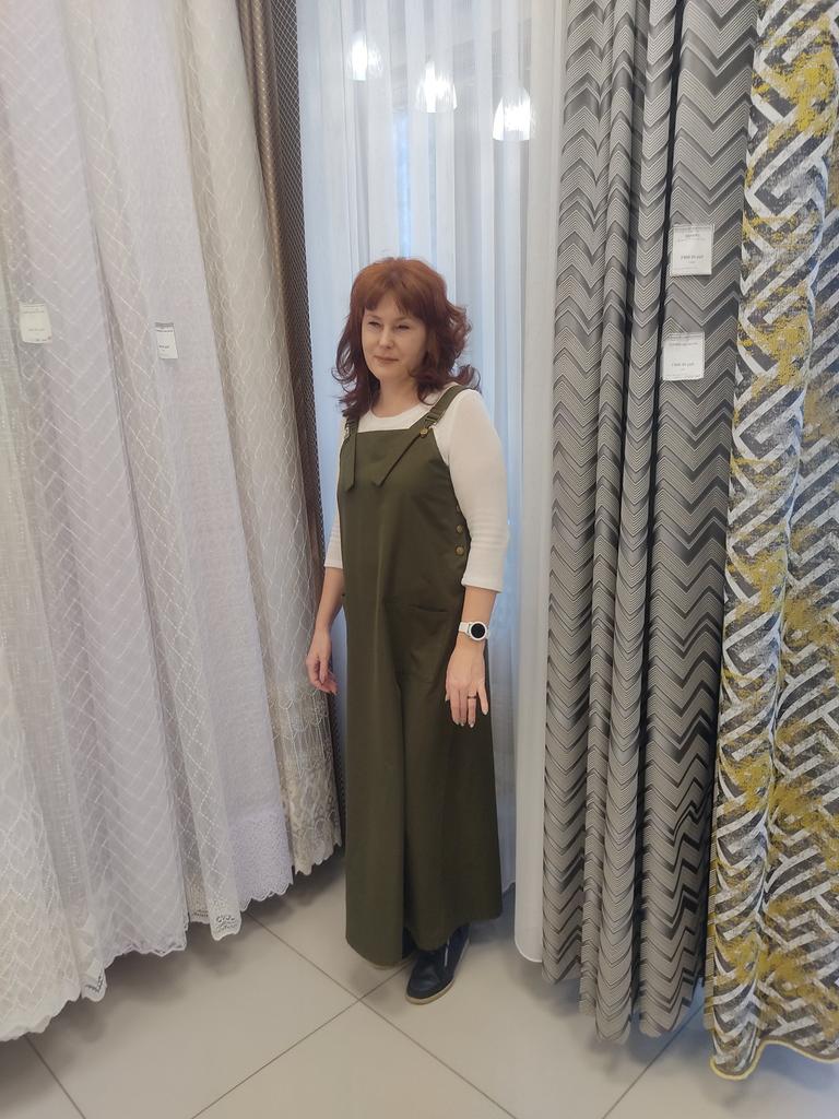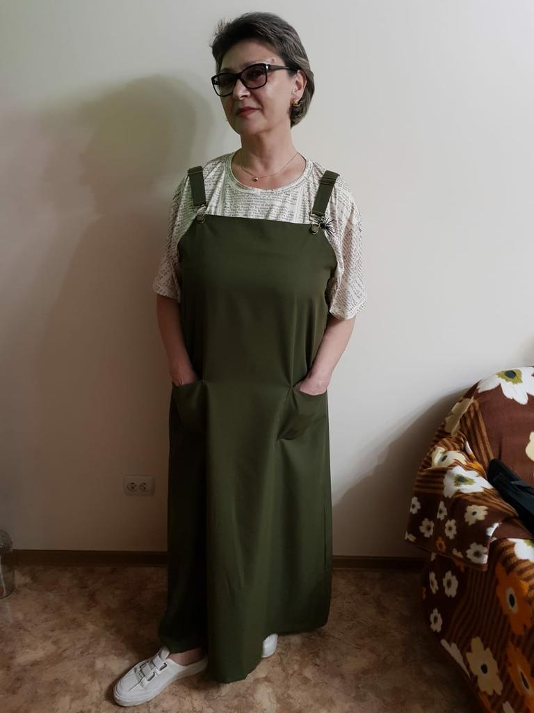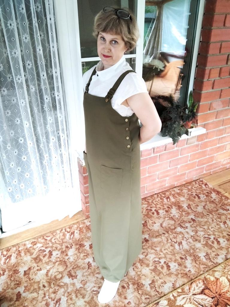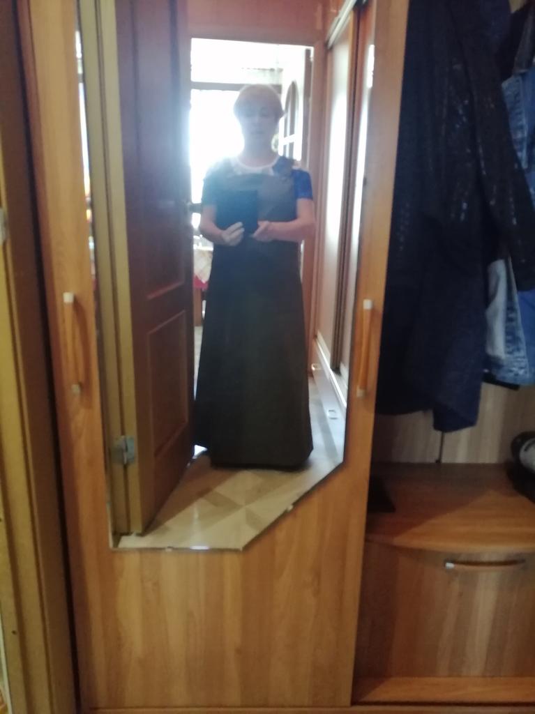 Beautiful, light, but dense fabric. Suitable for both summer and autumn. The length for a height of 172 is almost to the floor, but it is not necessary to hem. Fits OG 134.