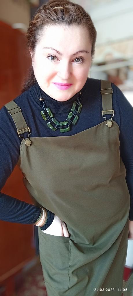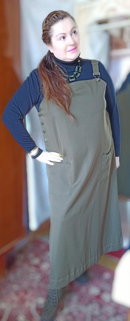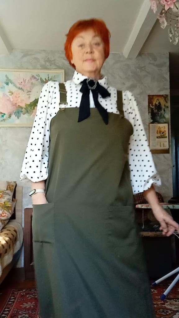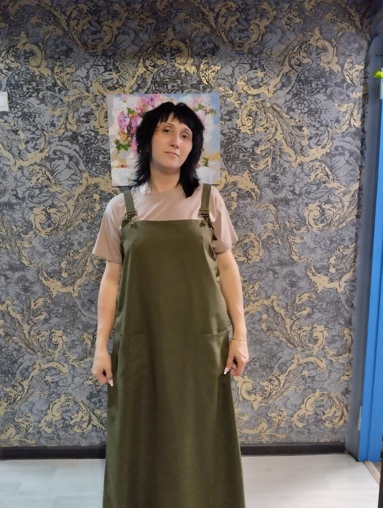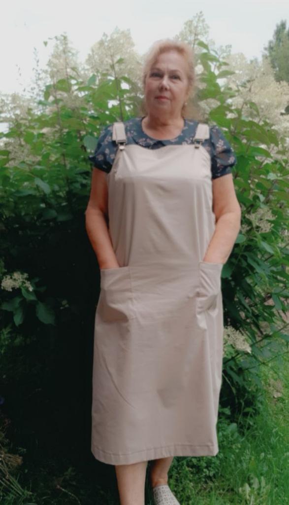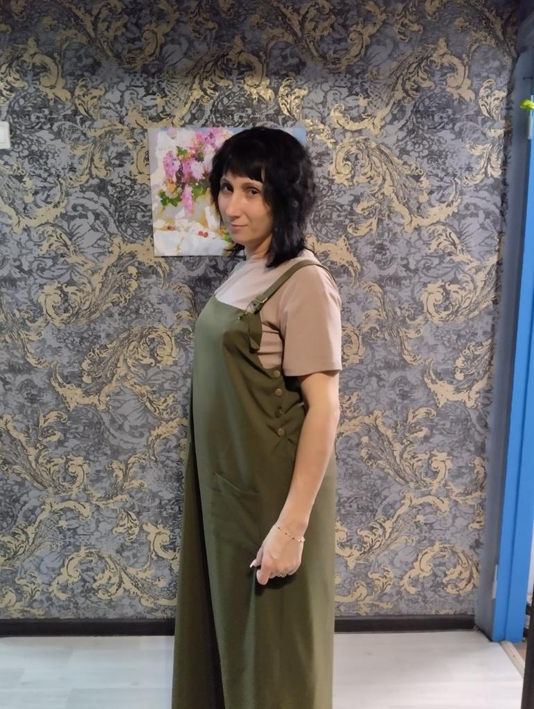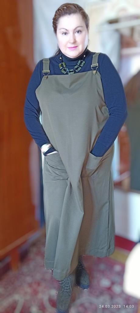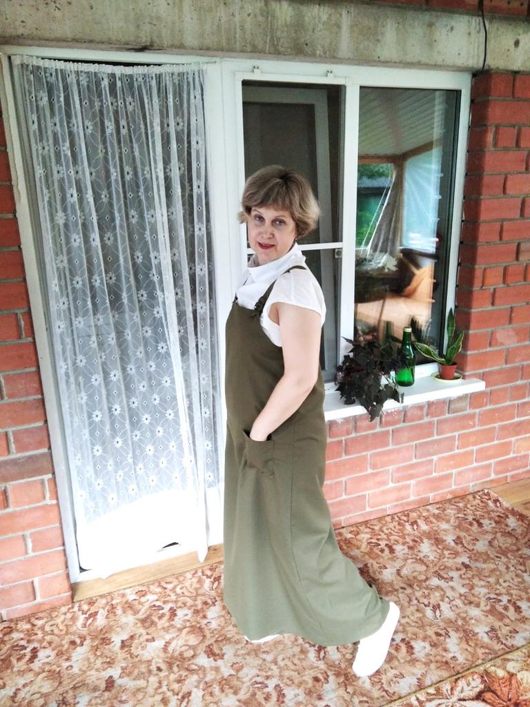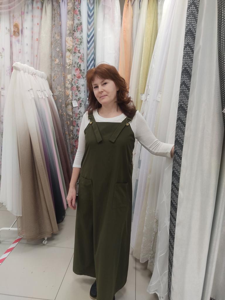 Beautiful, light, but dense fabric. Suitable for both summer and autumn. The length for a height of 172 is almost to the floor, but it is not necessary to hem. Fits OG 134.