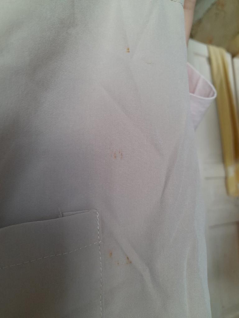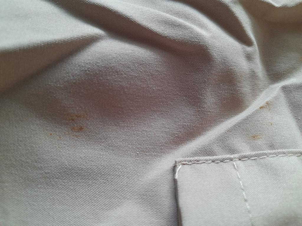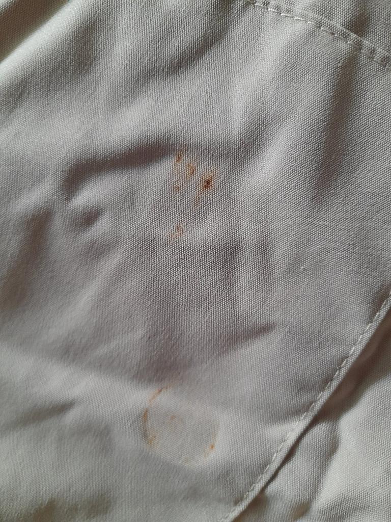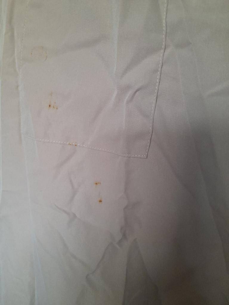 All stained and rusty, rusty buttons, lost color, very disappointed