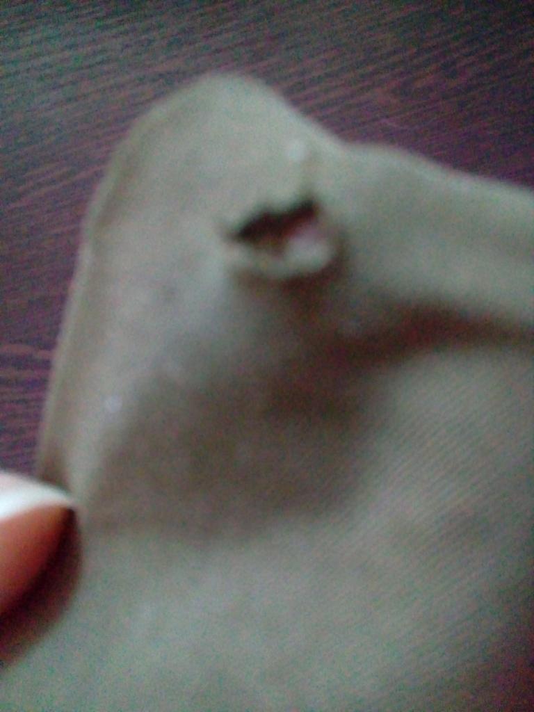 One fastener missing (metal button loop)