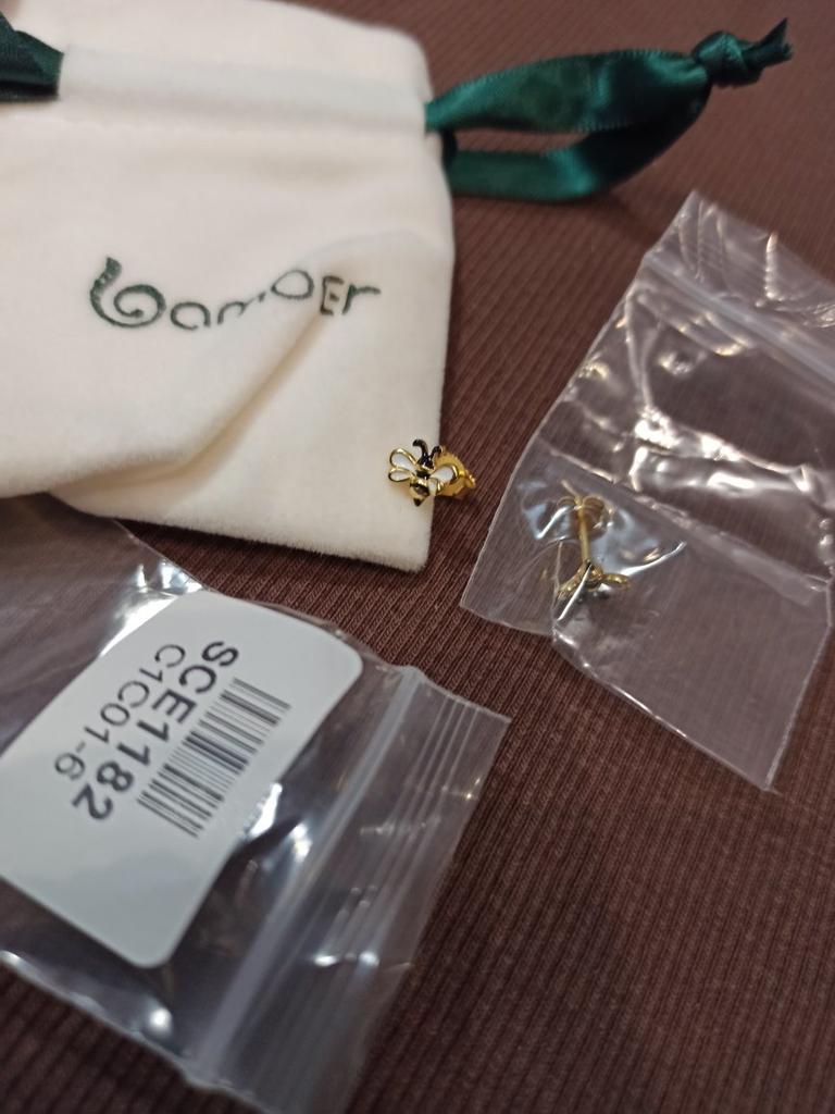 BAMOER 925 Sterling Silver Plated Gold Enamel Vivid Bee Earrings Studs for Women Fashion Jewelry