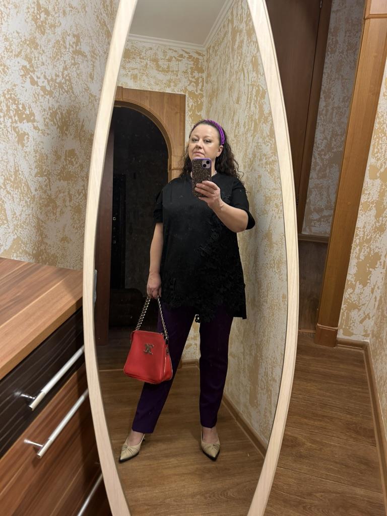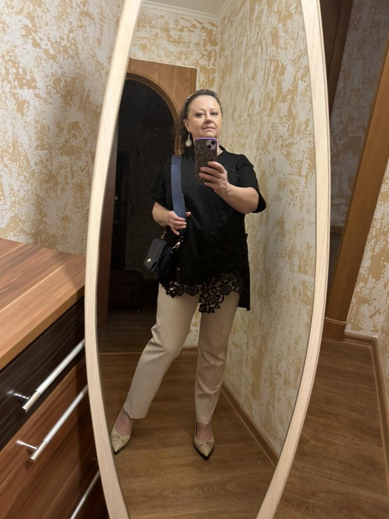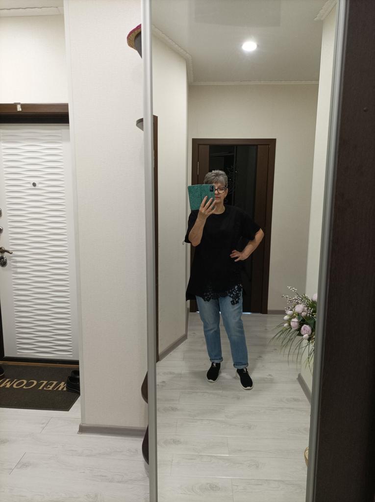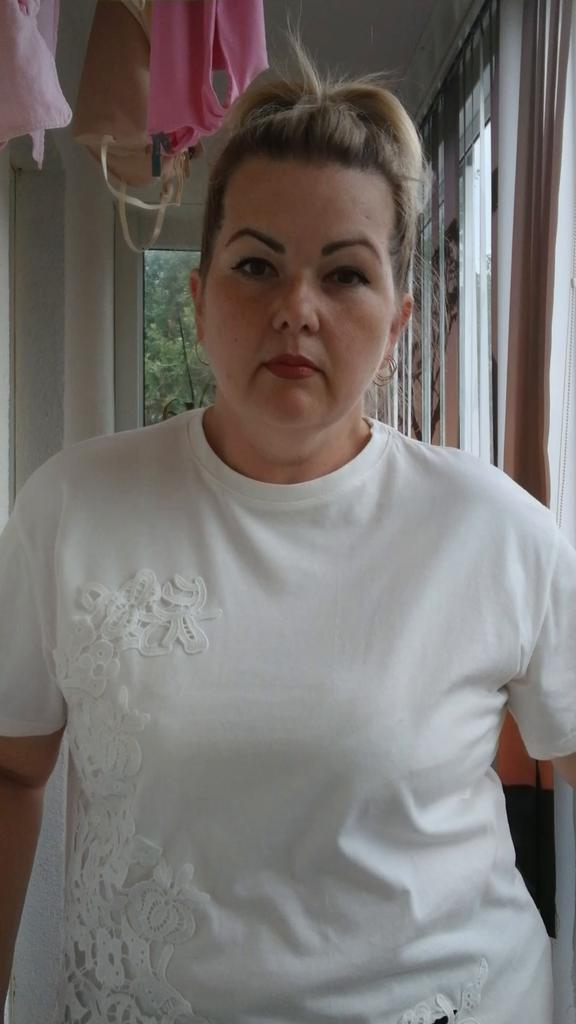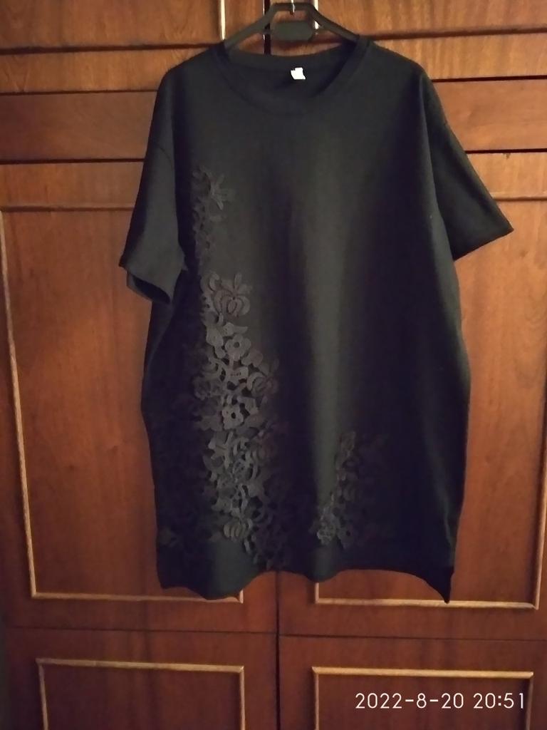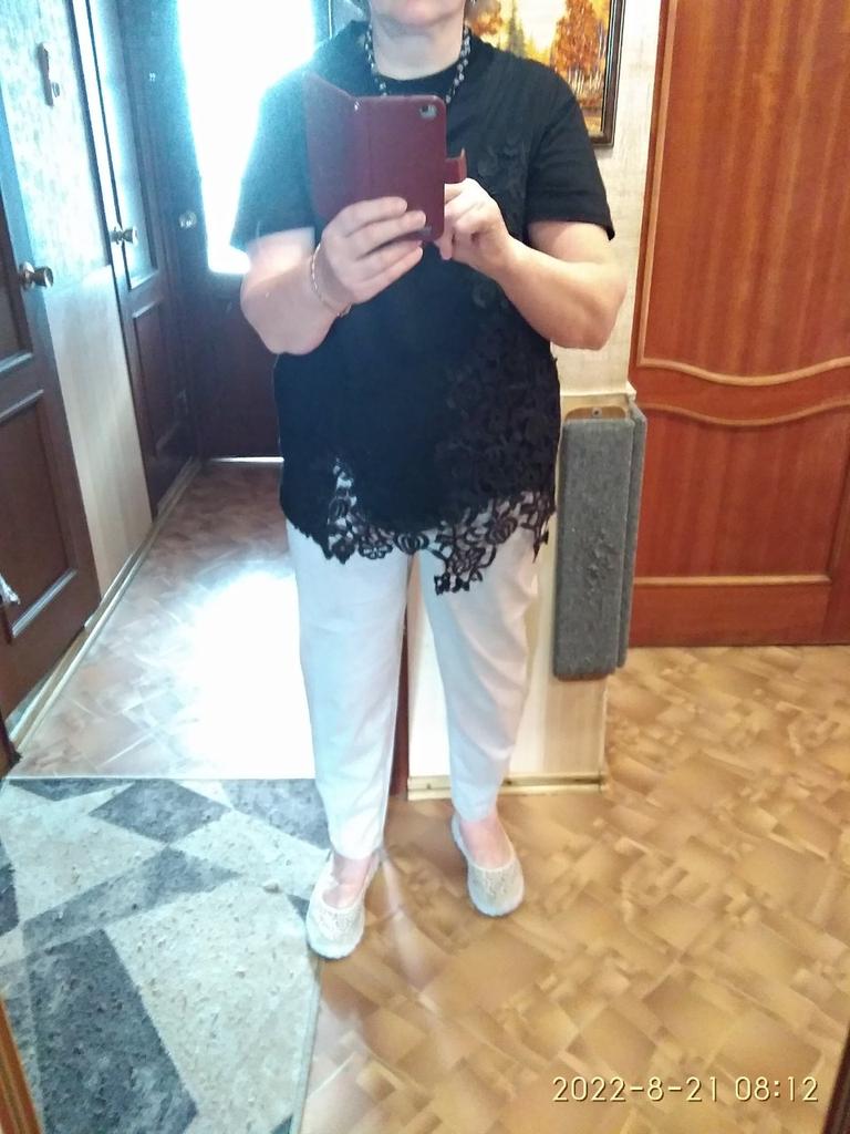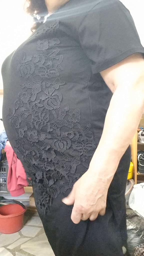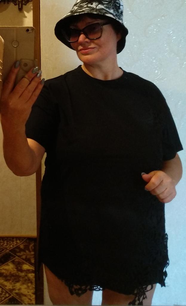 I liked the t-shirt. Fabric, lace - everything is of good quality. For 50 r, it fit perfectly. I am short, so the t-shirt looks like a tunic. Delivery 3 weeks to Kharkiv region. I will add it in a year: my favorite t-shirt, wash at 30° carefully, the color is not changed. Great thing!