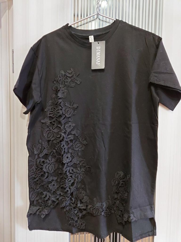 DIMANAF Summer Plus Size Women T-Shirt Cotton Lace Tshirt Fashion Lady Tops Tee Tunic Shirt Loose Casual Black Oversize Clothing