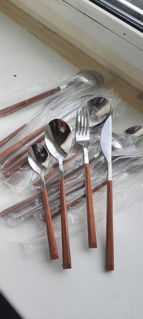 16 Pcs Stainless Steel Dinnerware Sets Glossy Silver Wooden Tableware Western Food Knife Fork Teaspoon Flatware Cutlery Set