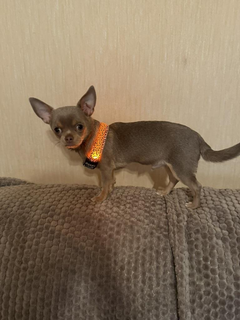 This is the second time we order this harness, we take S for 1.5 year old cocker spaniel. If you have good batteries, then evening walks are not a problem.