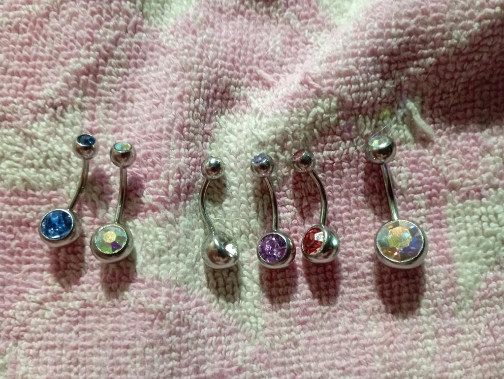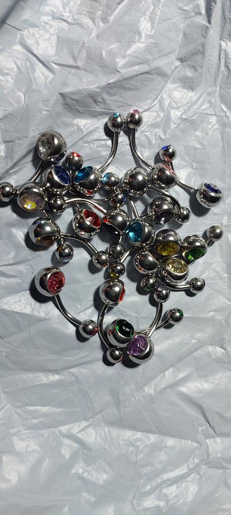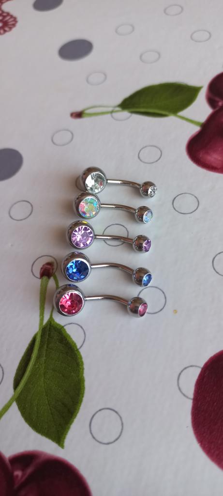 ~ Bauchnabelpiercing Set ~ The order arrived in less than a month undamaged and well packaged. The piercing set is intended for the navel and contains 20 different colored bananas with a bar thickness of 1.6mm. The seller specified stainless steel as the material. The piercings can be opened and closed with a screw cap. I've been looking for piercings with special colors for a long time, since the stones are usually offered in the same colors everywhere. I finally found a set that gives me what I'm looking for. I am really absolutely satisfied and happy with my purchase. The workmanship is also good, I often had at least one piercing with me in such sets, which was damaged or could not be opened. That is not the case here. I am happy about my large selection and definitely recommend the set.