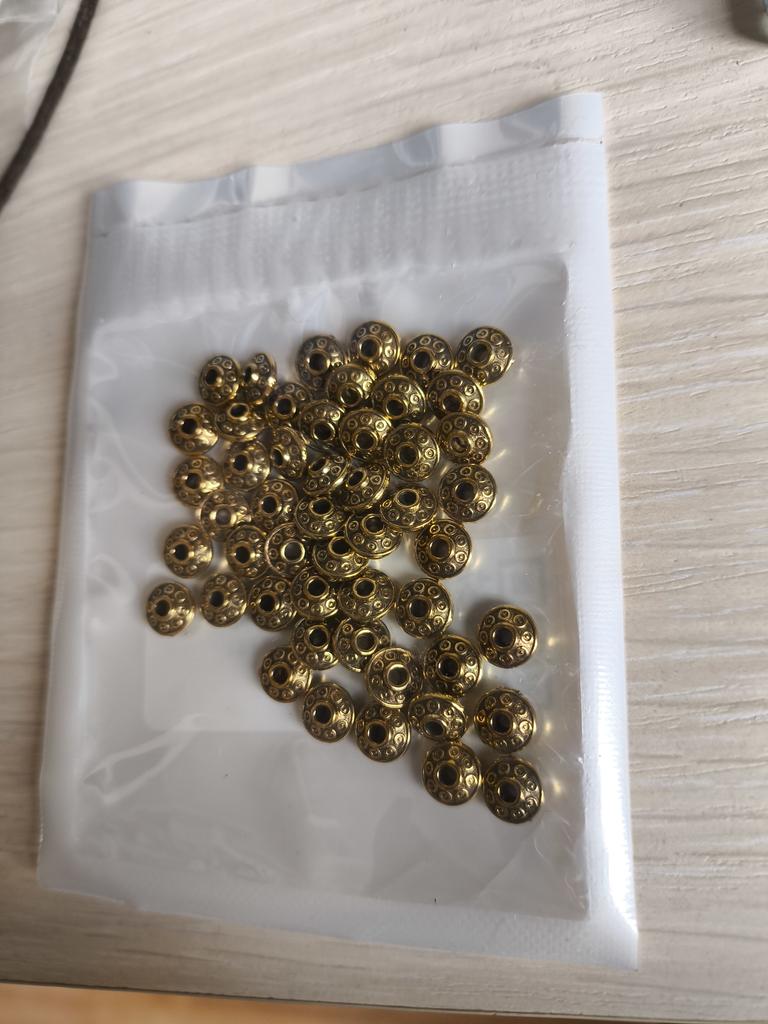 neat beads, all 50 pieces, but an unequal number of beads by color - 12 silver, 14 gold, the rest bronze. I didn't expect such a trick. Sad