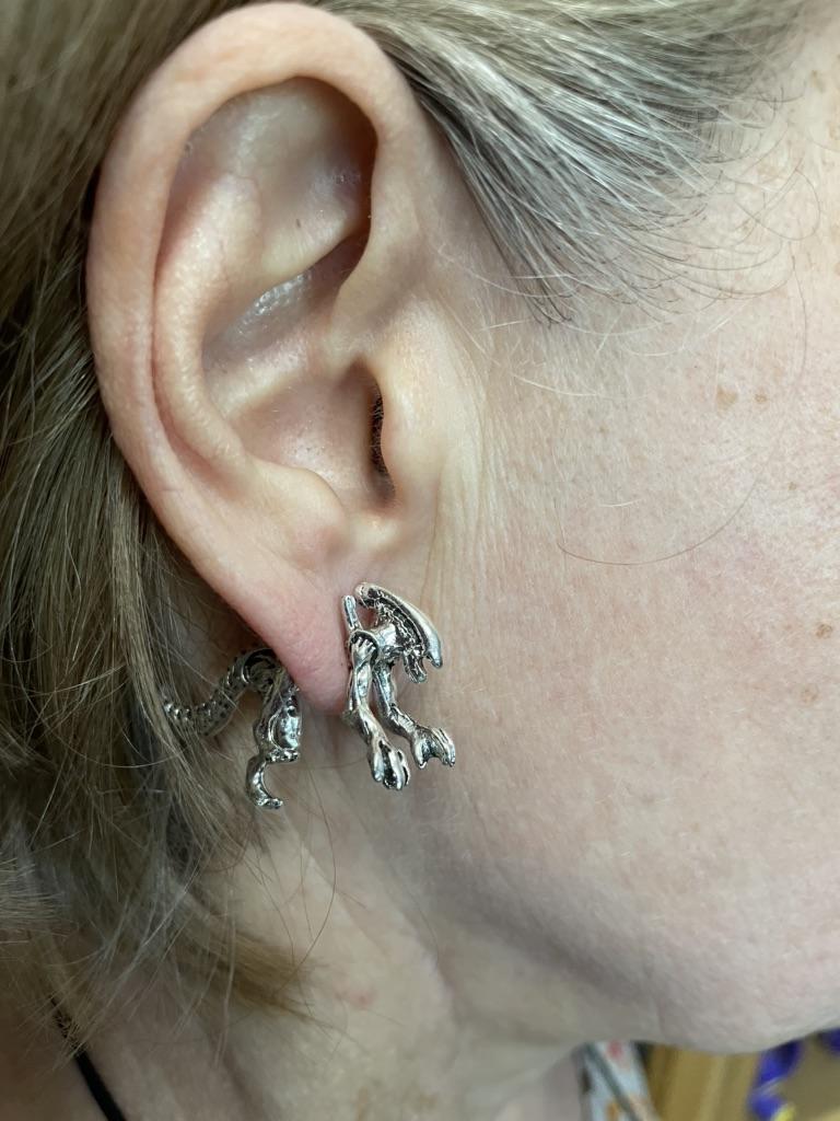 Cool Alien Earrings Black Enamel Stud Earrings for Women Animal Piercing Ear 3D Scary Dinosaur Earrings Jewelry Gifts