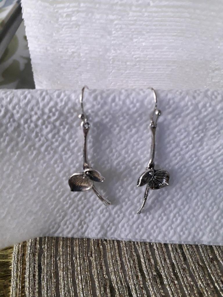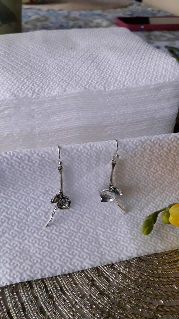 Beautiful earrings. I'm buying them for the second time. I lost the first one. I bought separate silicone backings. I've been wearing them for a long time. They haven't tarnished. I recommend them. Thank you for the delivery