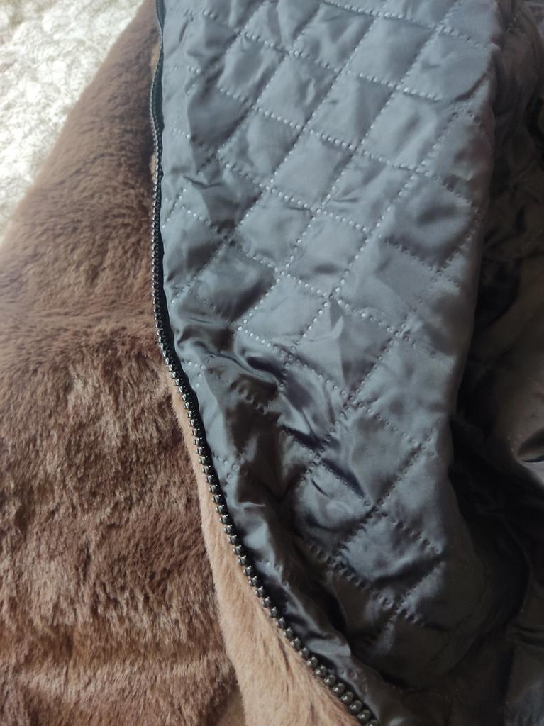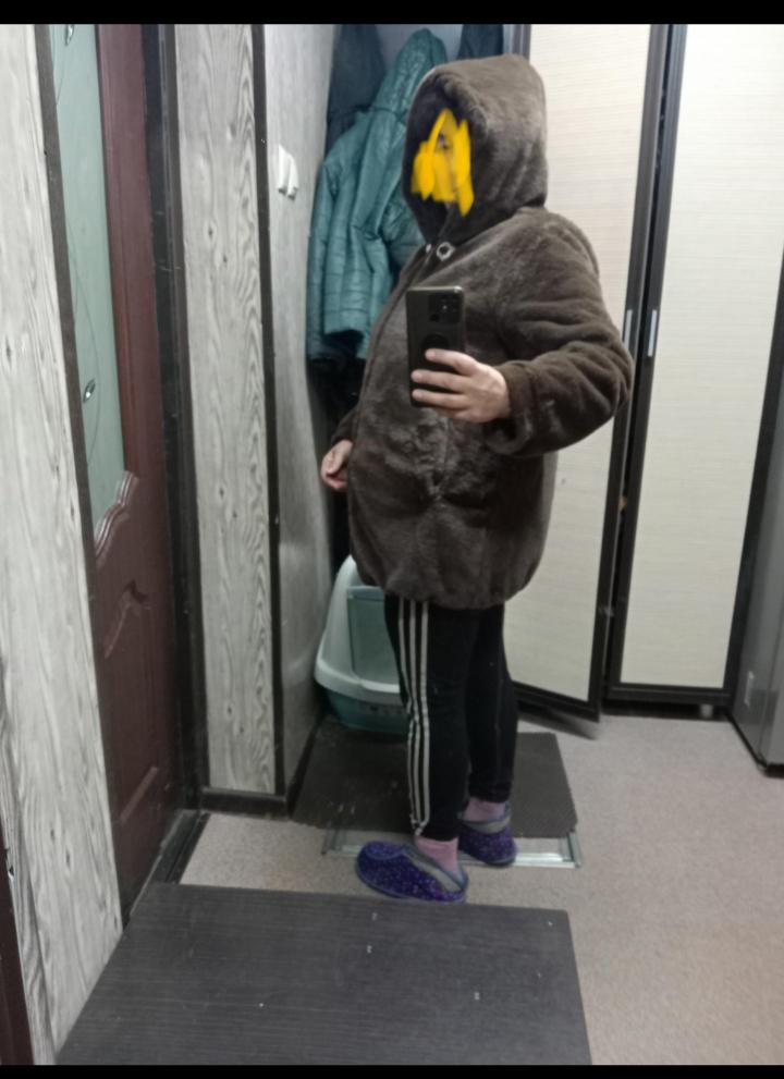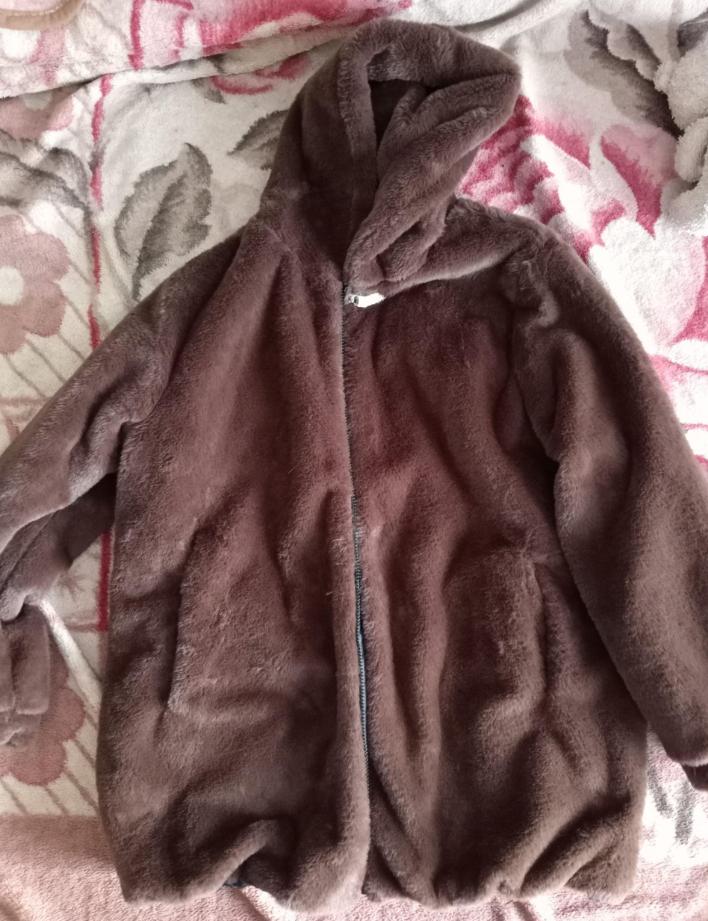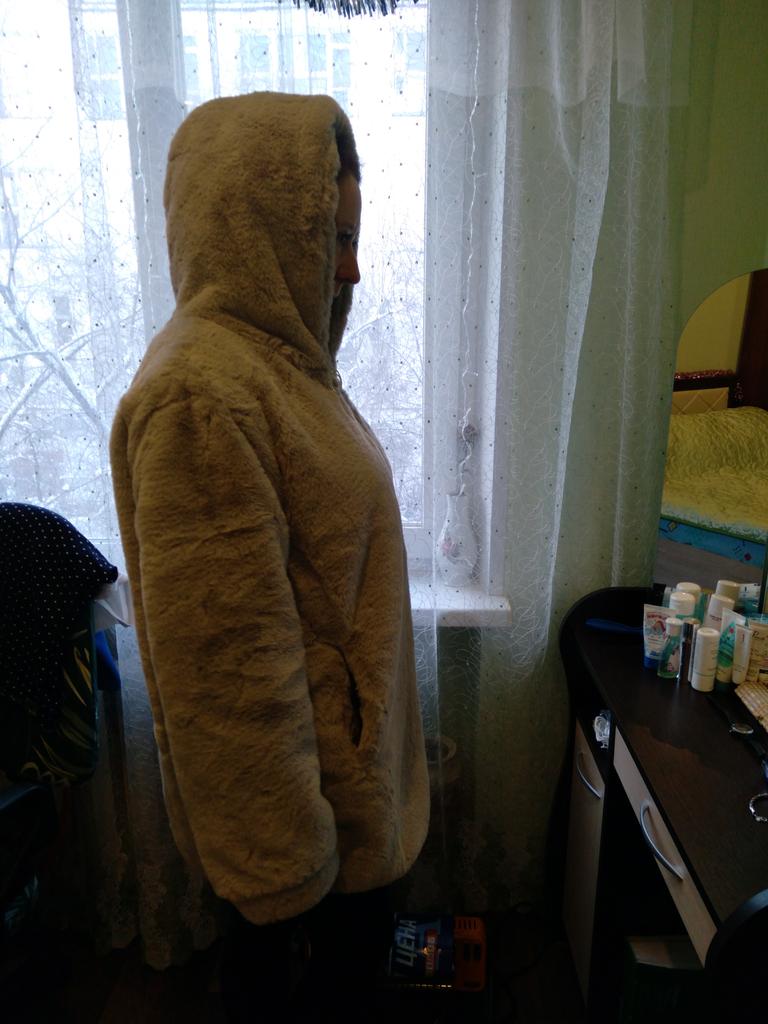 The size fits my M, loosely. The sleeves are also of normal length. In general, it’s a good “fur coat”, but very thin. I thought the lining would be quilted, but no, it’s just fabric with diamonds painted on it. Even in warm winter weather, you will need to wear something warm underneath.