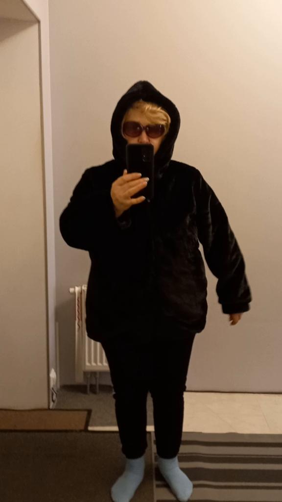 A well-taken photo (that's what I considered when ordering). The reality is not so beautiful anymore. Winter is still far away, maybe the wrinkles will go away and I'll wear it?