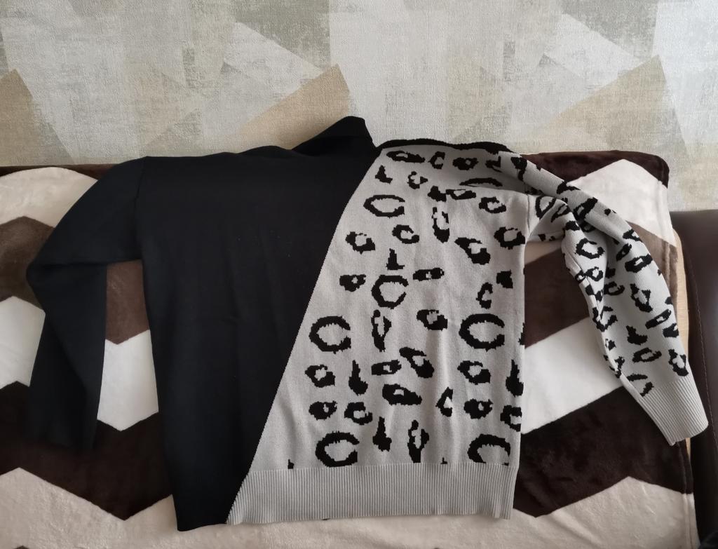 Women Autumn Winter Casual Knitted Sweater Jumper Pullovers Top Turtleneck Strapless Full Sleeve Leopard Patchwork Stitching Khaki Caramel Black S-XL