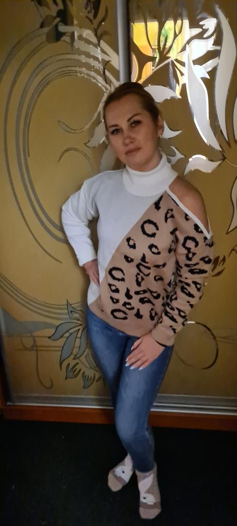 Beautiful sweater, it has very pleasant material, it is beautifully warm and comfortable π It goes with a lot of clothes. It is ideal for winter, autumn and spring π₯° It is known that it is of very high quality. The size corresponds to the table. It looks exactly like the picture In addition, the seller added a rubber band and that is very nice β₯οΈ
