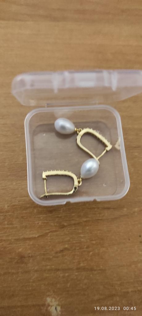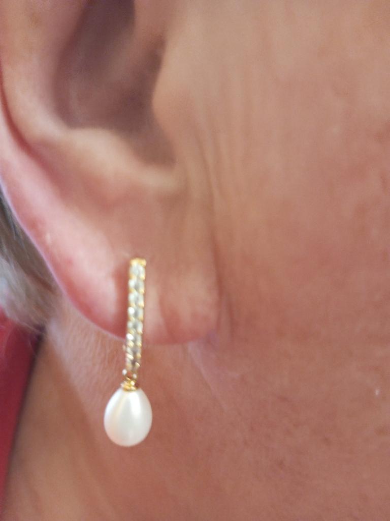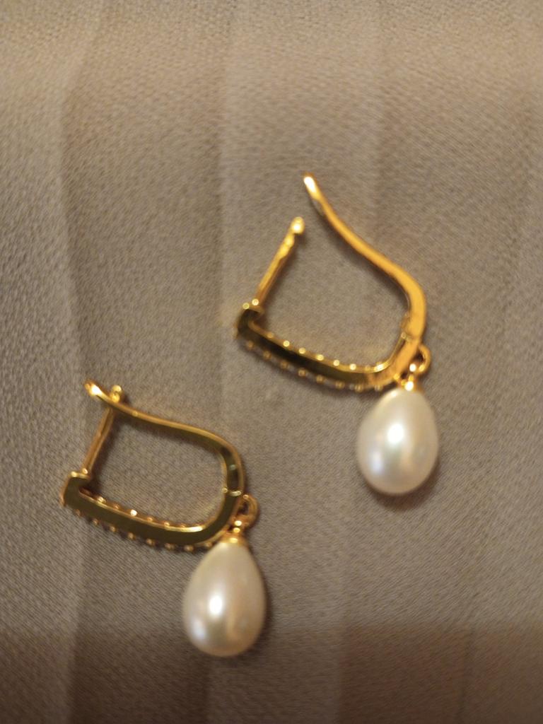 Beautiful earrings. Yellow gold color. The pearls are all pear-shaped.