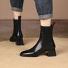 Women Ankle Boots Cow Leather Upper Flying Knitted Boots Shoes Vintage Thick-heeled Short Boots