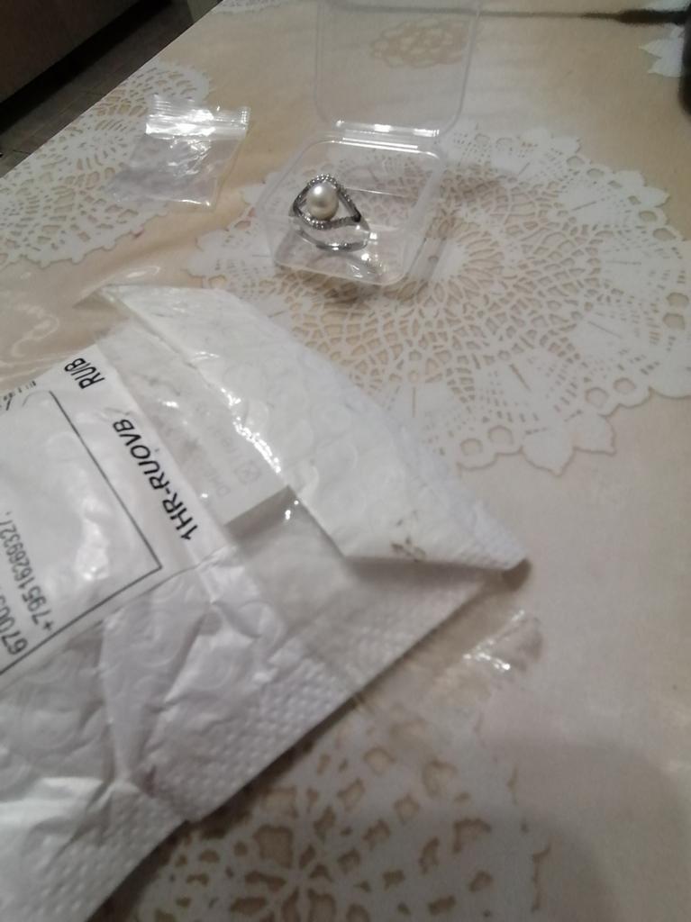 The package with the product was apparently opened, as it was sealed on top with ordinary tape. Joom products do not have such packaging. There are also doubts about the freshwater pearl. The description states that the size of the pearl is 8-9 mm. In my ring, the pearl is small, its size does not even reach 7 mm.