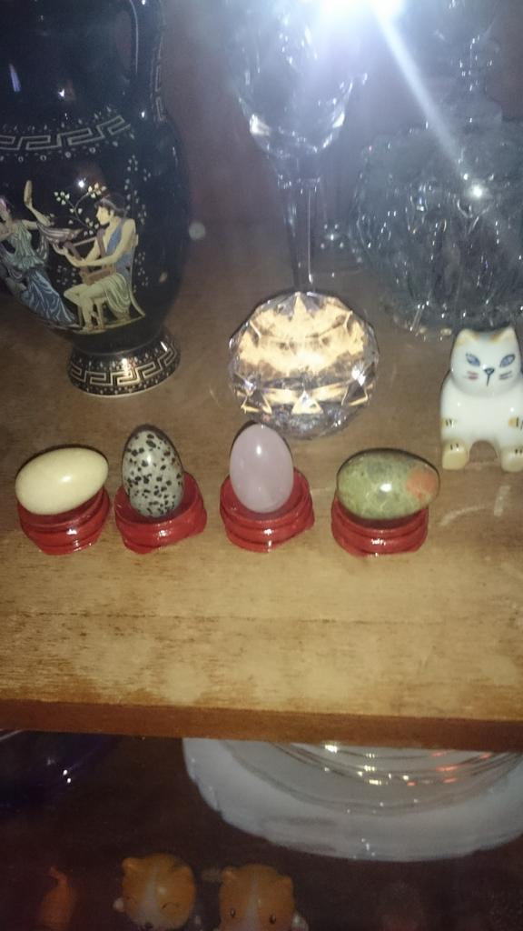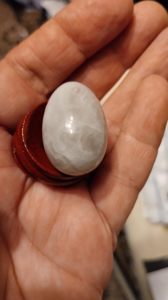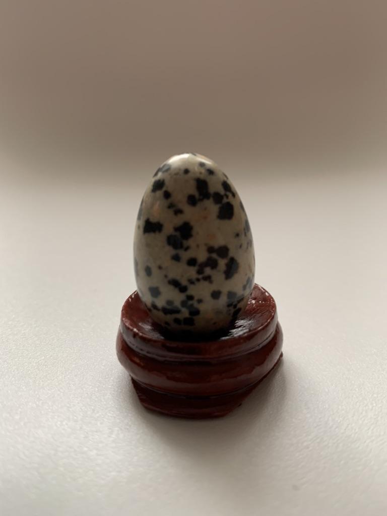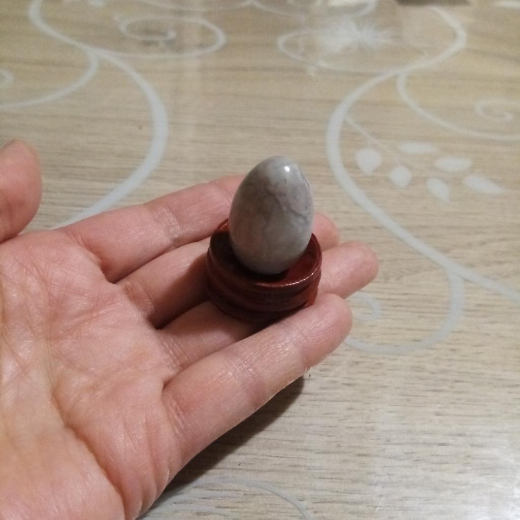 The eggs are made of natural stone, but very small, smaller than a stand, do not stand on it, lie on a barrel. For interior decoration, so-so. But they are quite suitable for working with chakras