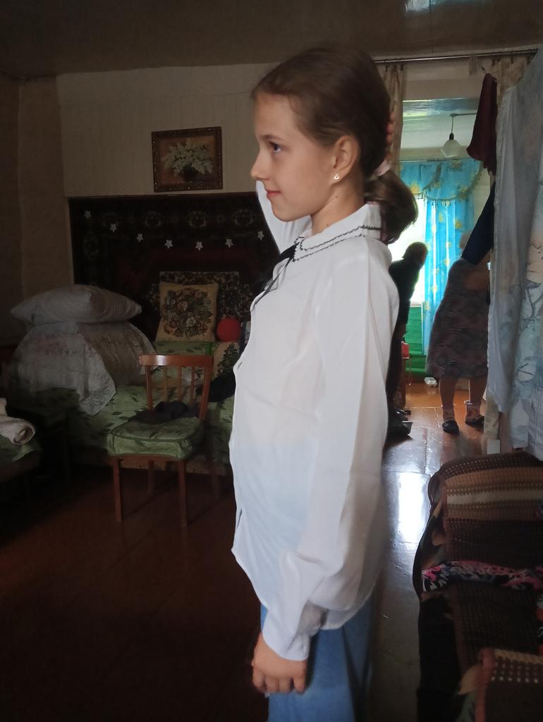 The blouse is good. A little big. The child is thin.