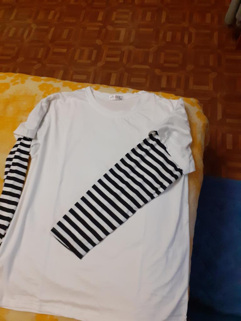 White, very pleasant to the touch, there are impurities (not 100% cotton). This is a gift, so I don't know if it will fit.