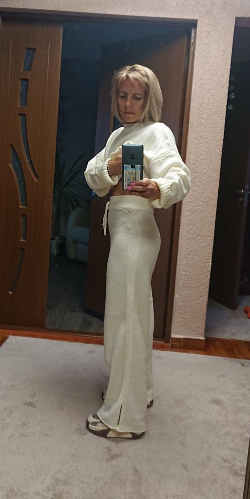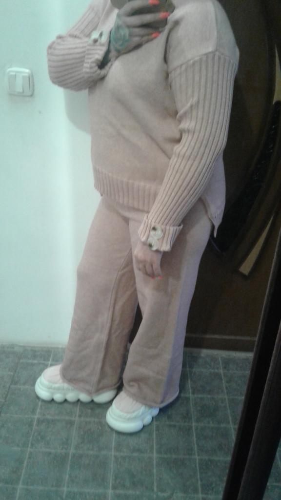 π€ Top quality knit suit by Hii Bloom ππ€ Telegram Channel: Ingajoom Promocode: JOOMDEAUGUST π Details im Video π₯ ***************************************************** My measurements are 90-69-93cm. I am 156cm tall. The one size suit fits me perfectly. π My measurements from the suit: Sweater with me in overseat style: chest 126 cm to 200 cm, hips 130 cm to 200 cm, total length 56 cm. Pants: waist 60cm-120cm, hips 94cm-160cm, pants width top 56cm-100cm, bottom 56cm, total length 98cm. Overall, the suit is slightly smaller than what is stated in the size chart, please note! Which of course isn't a problem for me at all π π Top quality π Very soft, good stretchy acrylic, medium density. π 6 colors to choose from π With me in khaki π Delivery time: 3 weeks to Germany I am absolutely thrilled and would happily recommend the suit and the seller βοΈβοΈβοΈβοΈβοΈ Your Inge π