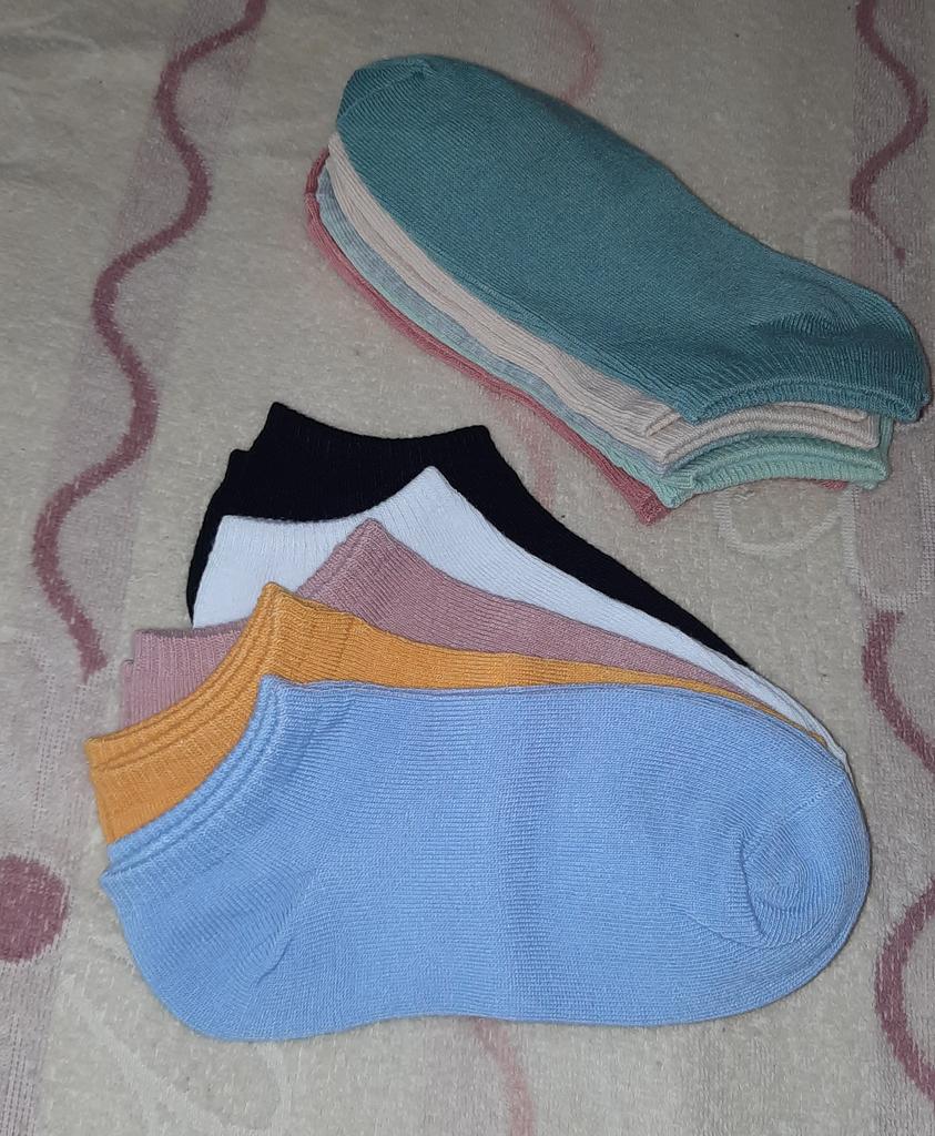 Very nice women's socks!!! The set consists of 10 pairs of socks in different colors.🧦 👌 ✅️Quality: The product is of excellent quality!👍👍👍The socks are made of cotton, can be used in any season, because they keep the foot warm and dry, not thick, are suitable for sports activities or simply for home use. My feet is 23.8cm. The socks fit me perfectly!! ✅️Delivery time: 15 days to Germany. ✅️Beautiful socks!!! The product does not have an unpleasant chemical smell. Is recommended. 5 🌟! Thank you Joom and the seller!🌷🙏