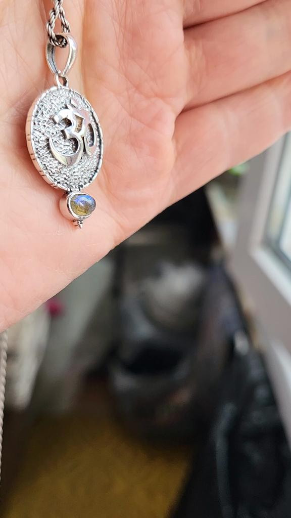 Reiki Pendant, Blue Topaz Garnet Labradorite Carnelian Silver Pendant, Om Pendant, 925 Sterling Silver Handmade Jewelry, Silver Pendant