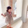 >Feature: Flower printing girl pleated dress, summer seaside beach dress, puff short sleeve and suitable square neckline design, toddler baby girl summer casual dress.