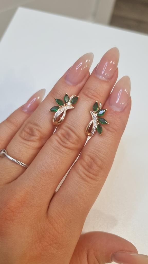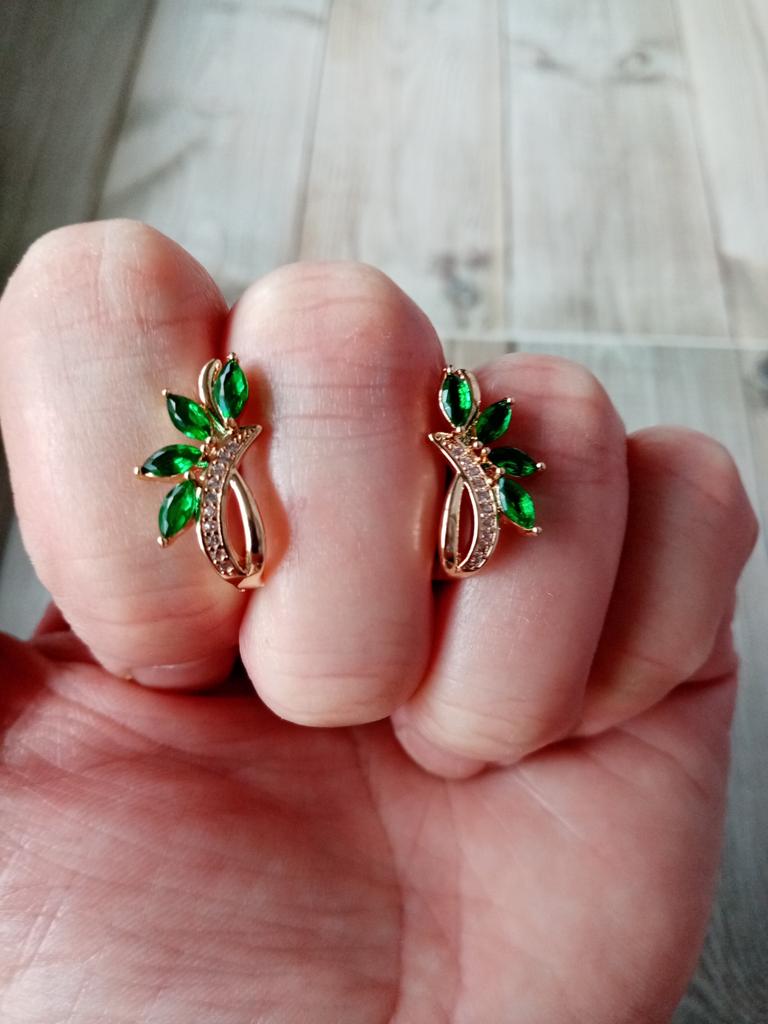 Delicate Green Stone Marquise Flower Hoop Earrings for Women Luxury Gold Color Wedding Earrings Jewelry