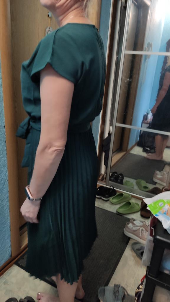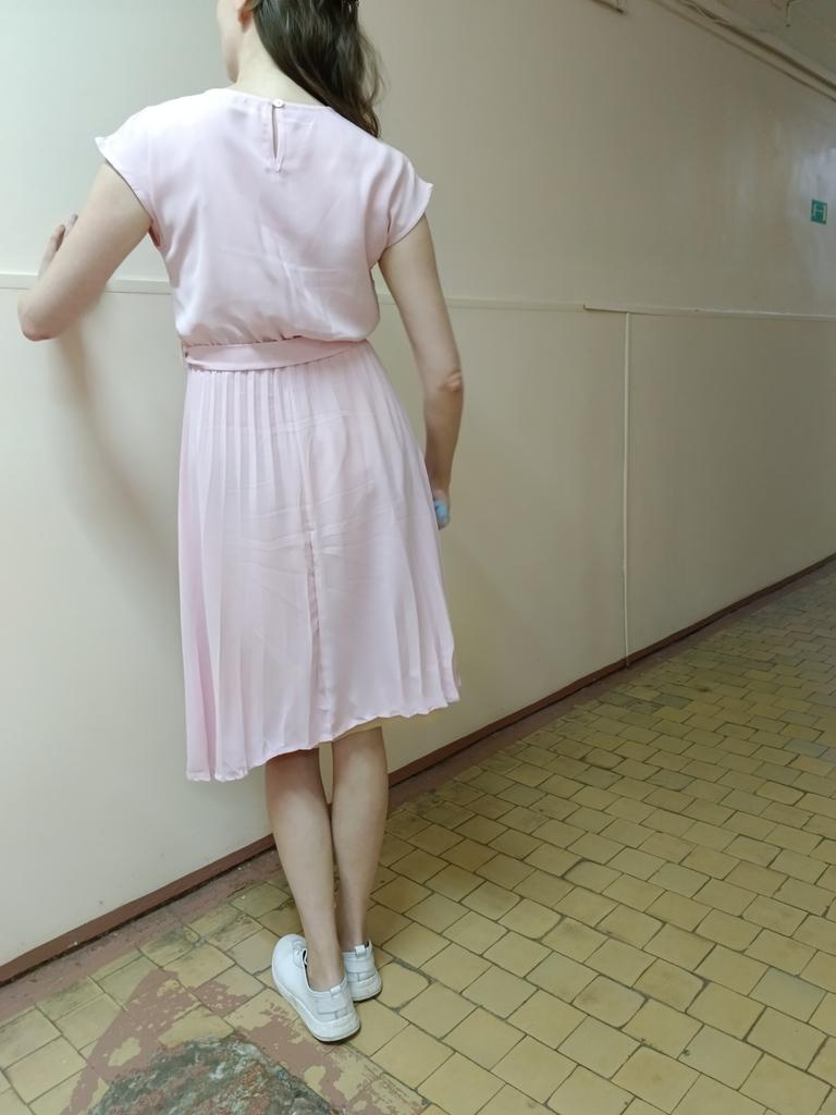 The dress looks gorgeous! The fabric is pleasant to the touch. The pleat on the dress is not created qualitatively. When ironing it should not stretch.