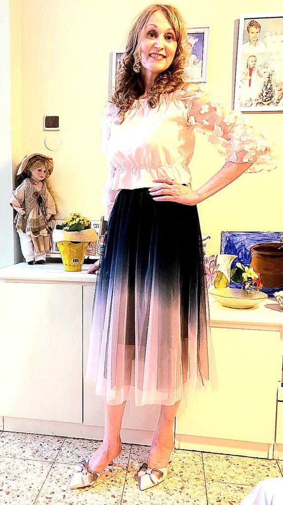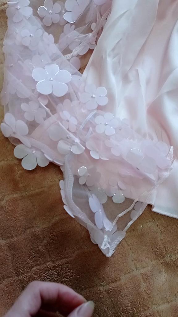 Beautiful, as shown, I ordered it 2 sizes larger than EU and it fits! Pleasant material, the tulle sleeves are also nice and soft. Great price, I'm very satisfied, thank you very much!