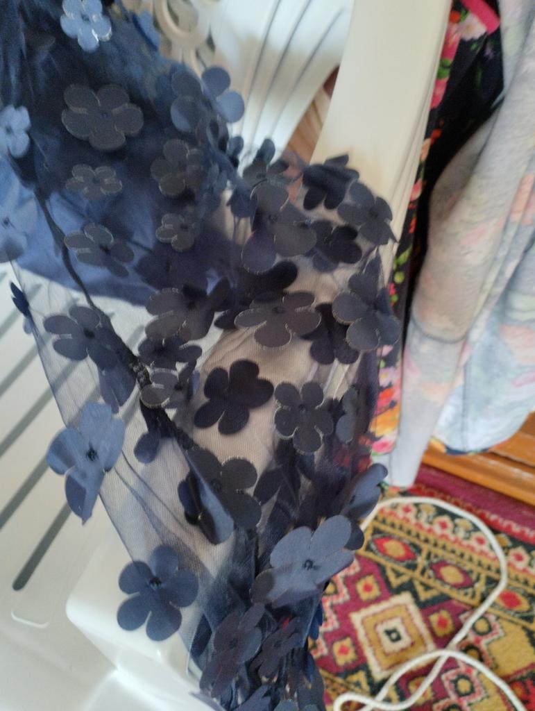 Very light, beautiful, neatly made flowers on the sleeves. Kind of a topic. Just right for summer!!!