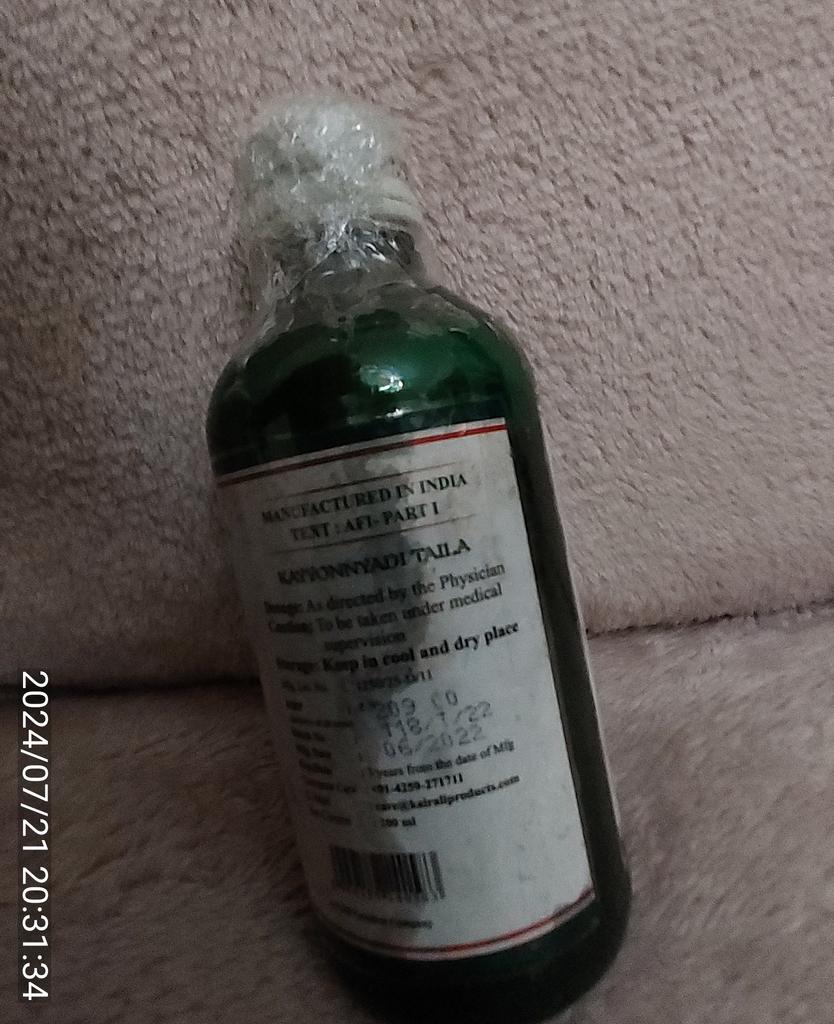 Kayanyadi Kera Tailam (Kayyanyadi Kera Thailam) is a natural remedy. This hair oil is designed for hair loss, dandruff and premature graying.. Kayanyadi kera tailam prevents baldness and promotes healthy hair growth. The tool nourishes and moisturizes the scalp, relieves split ends and thinned strands.. The oil, when massaged on the scalp, gives a pleasant cooling effect, relieves headaches and eliminates insomnia due to stress.. Kayanyadi kera tailam also relieves eyes from redness, itching and dryness..