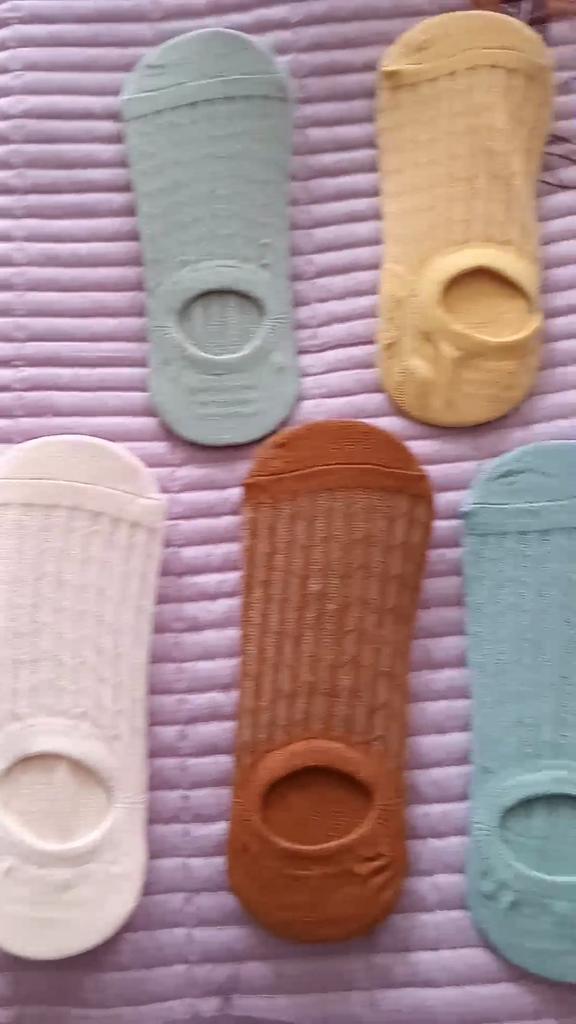 5 Pairs Summer Women's Mesh Cotton Socks Solid Color Silicone Invisible Boat Socks Silicone Non-slip Ankle Socks Deodorant Antibacterial Socks
