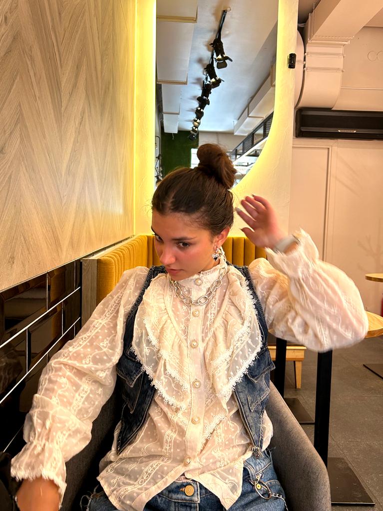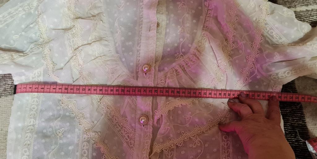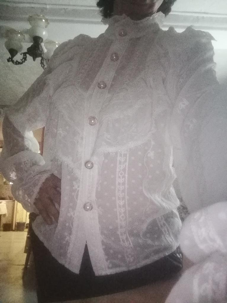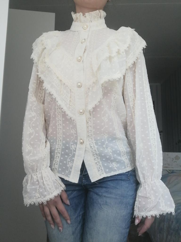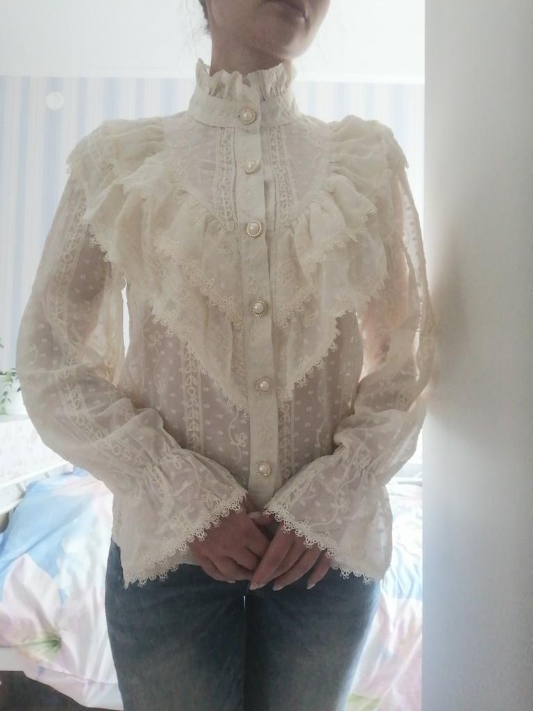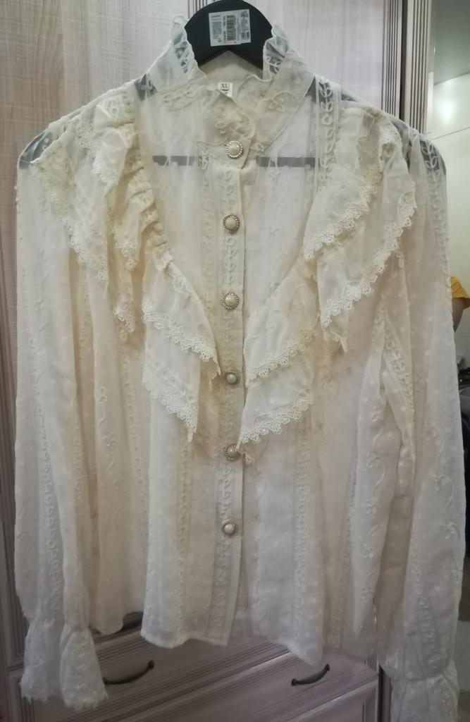 Very delicate blouse of good quality! Better than I expected! A little transparent, but you can wear it with a bra, as the frills in the front cover everything well.