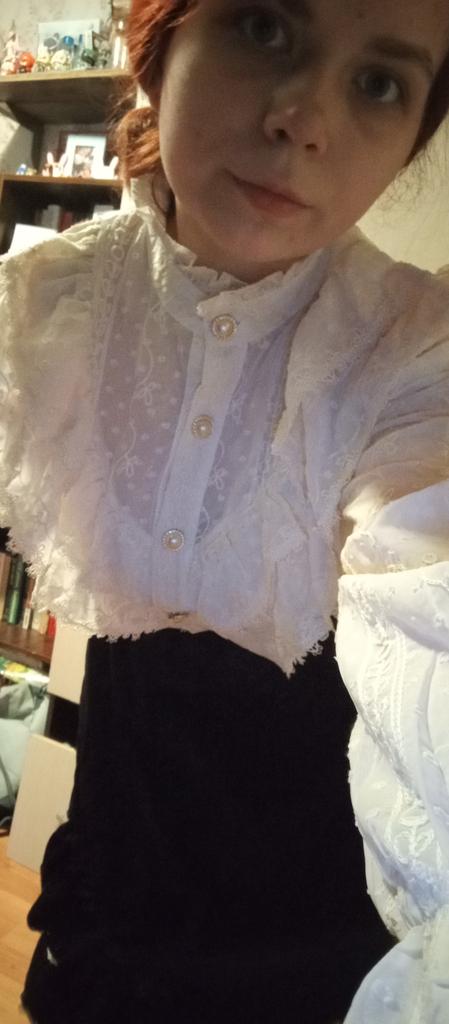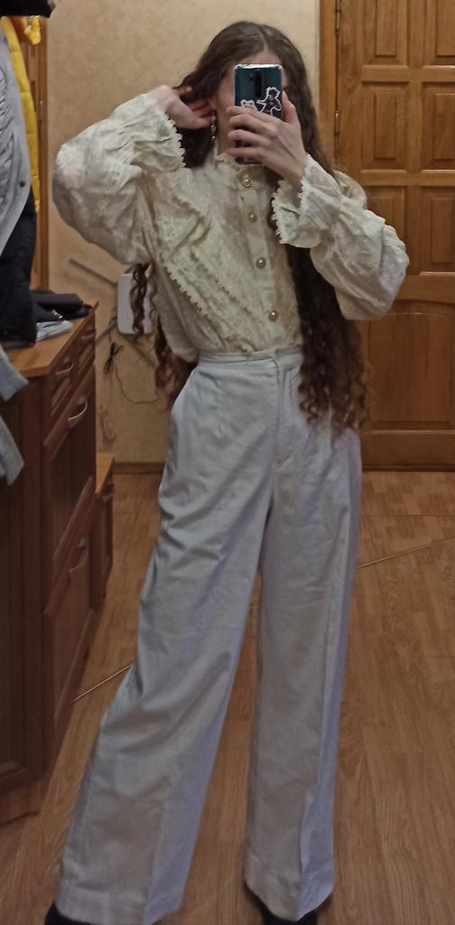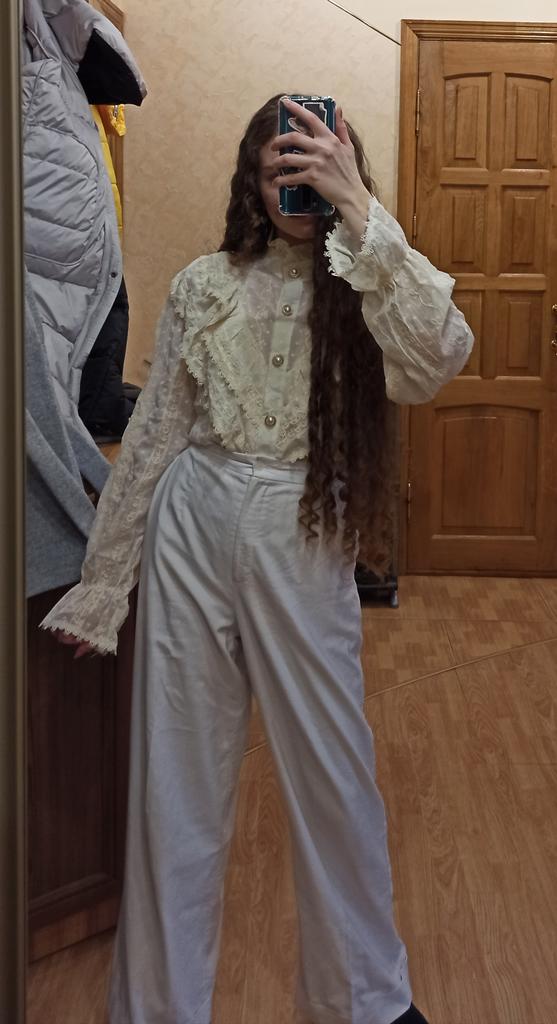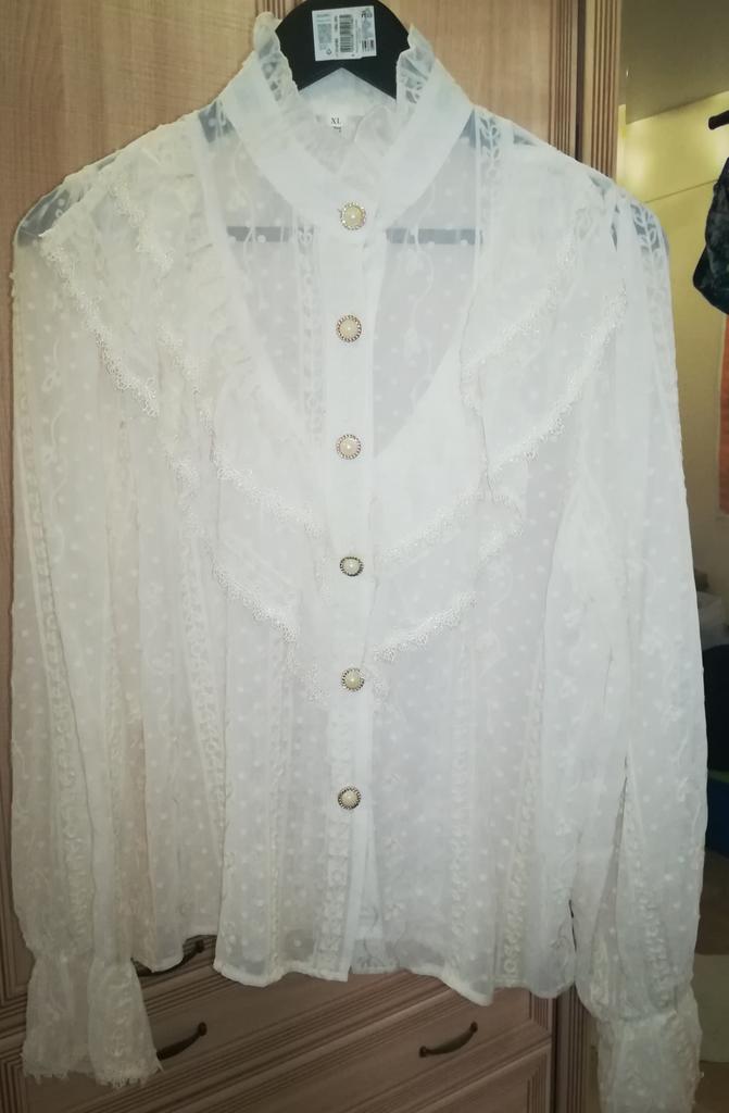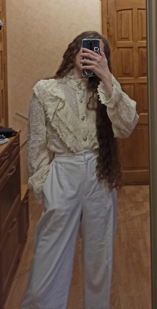 The blouse is simply beautiful, very nice on the body, I took 2 sizes larger (the size grid shows the sizes correctly, I wanted a little oversized). Only one minus is that the material is chiffon, not what is written in the description, but this does not make it worse. Thank you) After washing, the remnants of glue began to come out, but they were quickly cleaned, for this -1 star