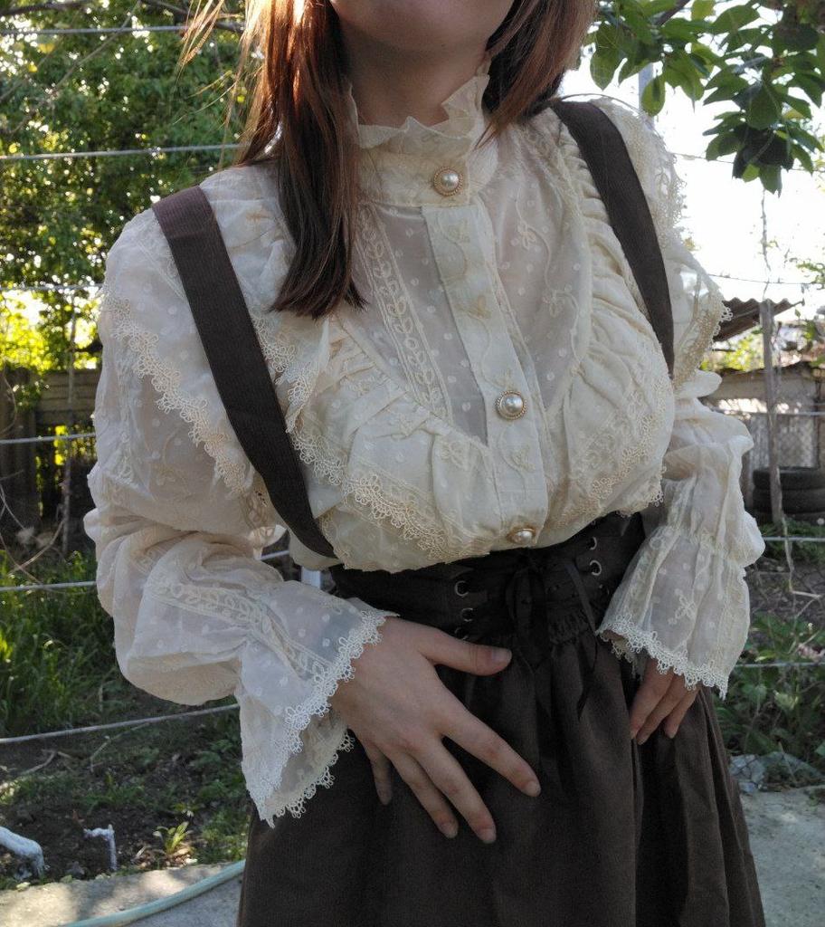 I was expecting this blouse the most. It’s beautiful, but the material is so poor that it makes me itchy. It must have been a cotton, but it looks like I’m wearing DIY curtains. Though, curtains have a better quality than this. Maybe I’m unlucky to get the worst blouse, but no one even said it’s fully transparent. You can’t wear it without a shirt underneath it. Plus, threads are sticking everywhere and a bit big for my 5’4.