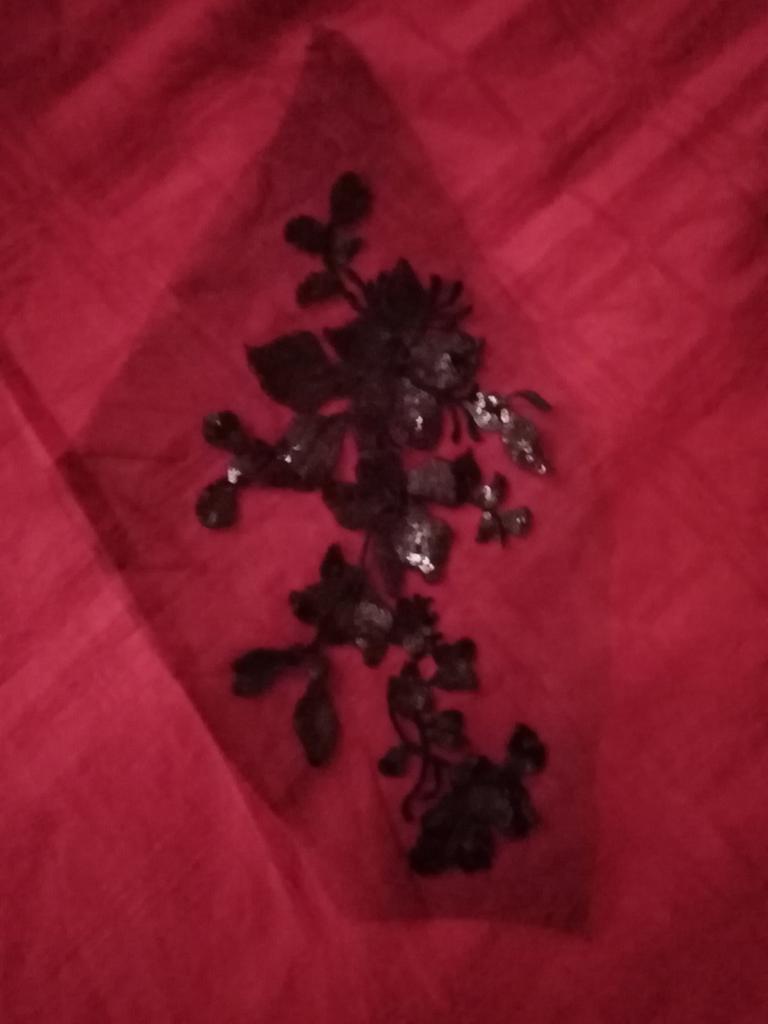 The floral embroidery is very pretty, I don't have enough time to use it anywhere! Either on a black blouse or on a burgundy one.
