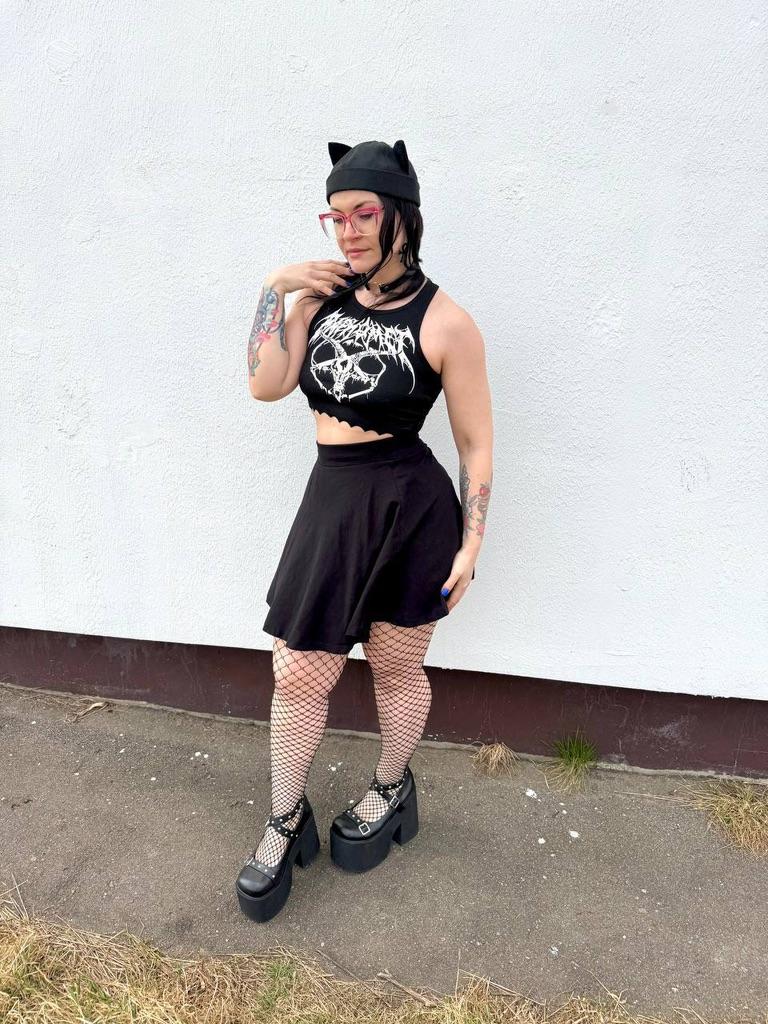 Gothic Knitted Punk Black Tank Tops Mall Goth Grunge Goat Print Harajuku Women Crop Tops Skinny Sleeveless Streetwear