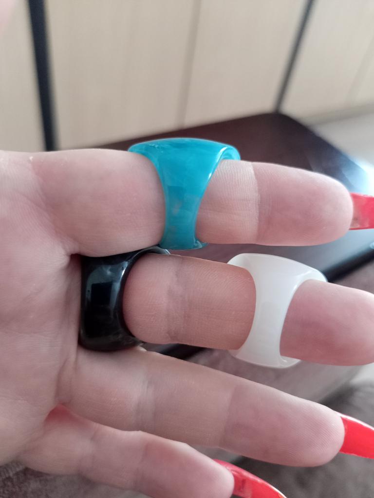 The rings are high quality, interesting, but they are all the same size. You can't wear two at once, that's a minus.