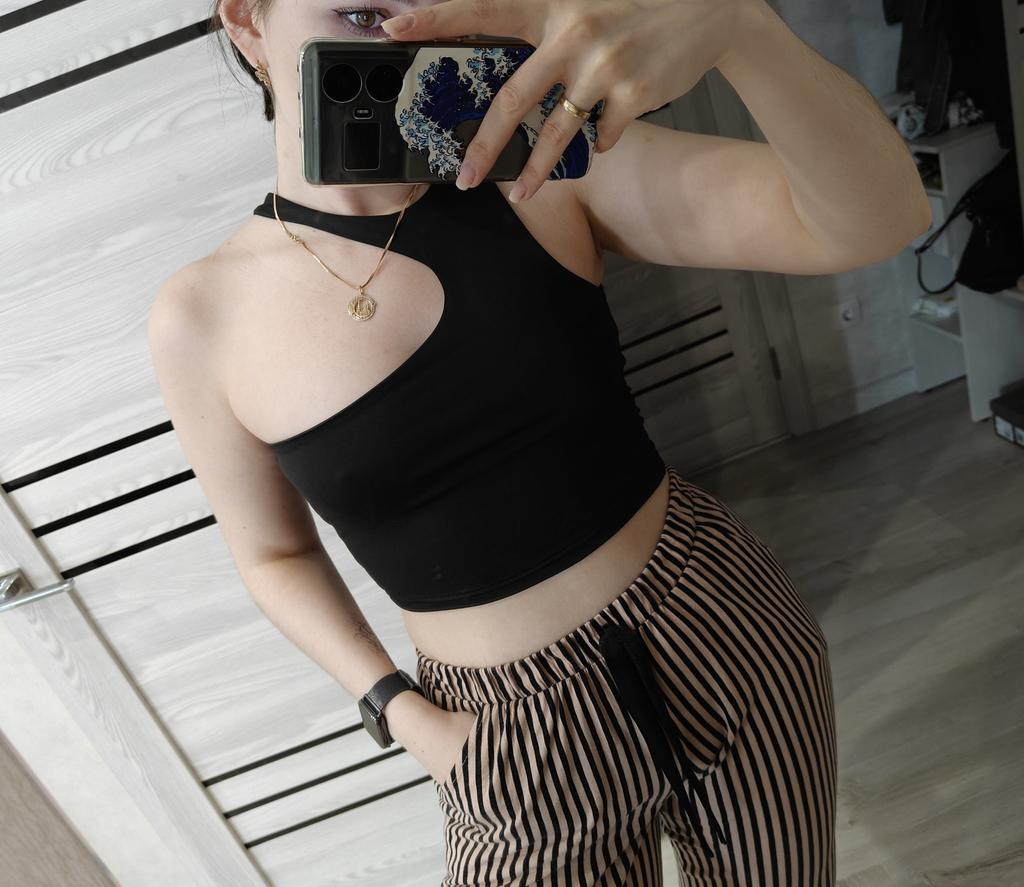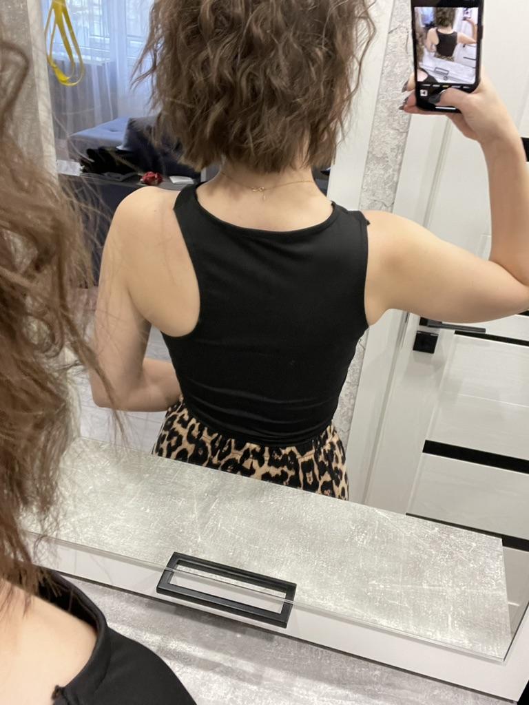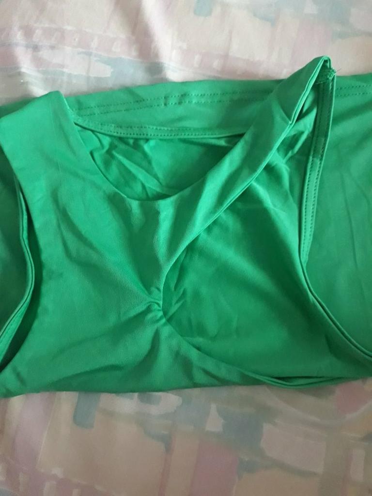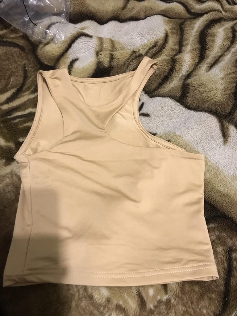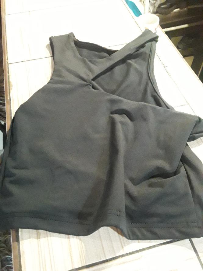 Terrible tops. The picture shows that it is long and will not end below the chest. The fabric is synthetic. Roast I do not advise.