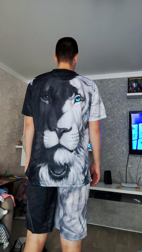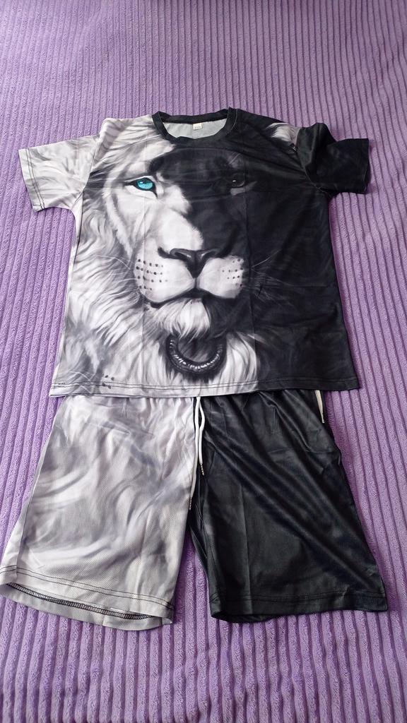 Summer Men's Suit 3D Printing Cool Street Oversized T-Shirt Brave Liger Sportswear Domineering Fitness Sports Pants 2-Piece Set