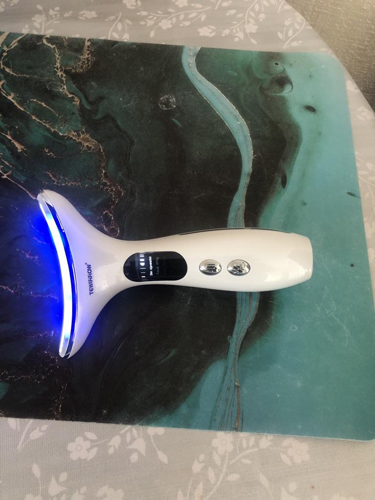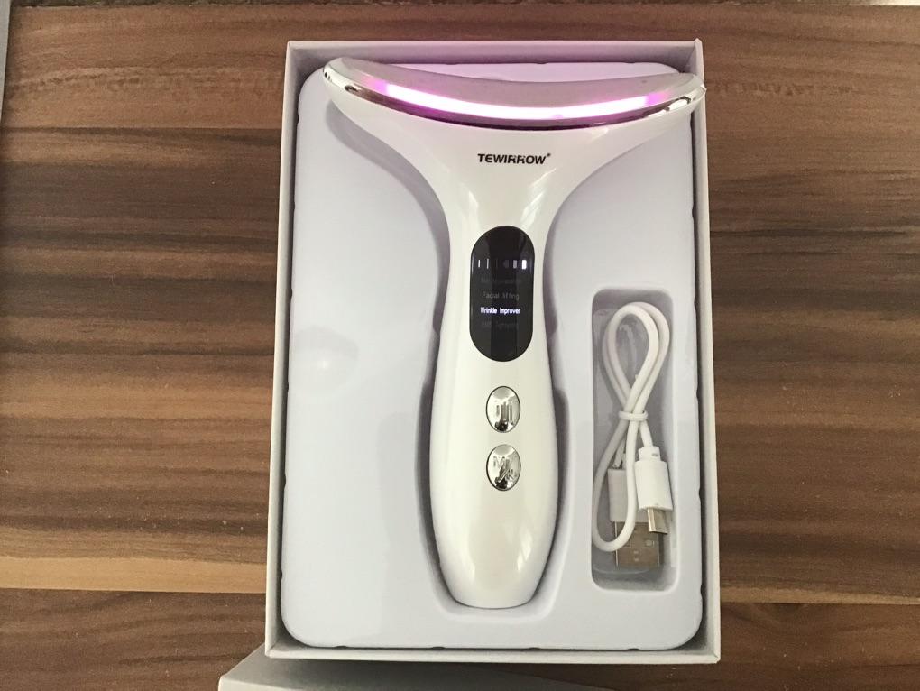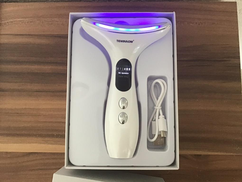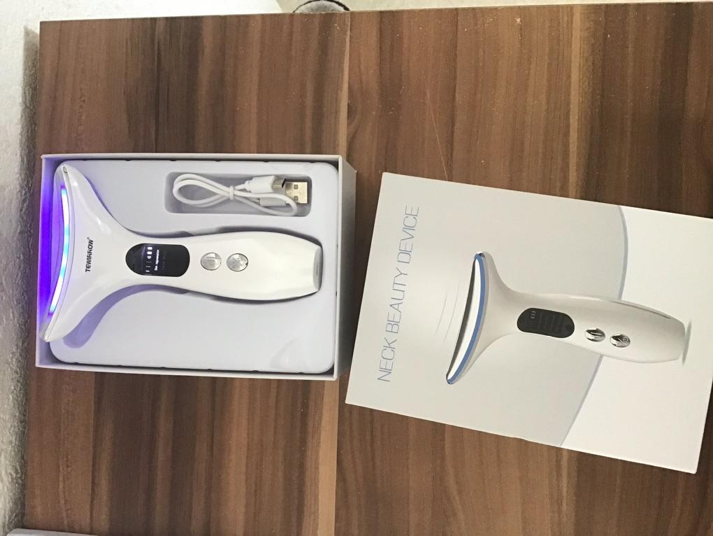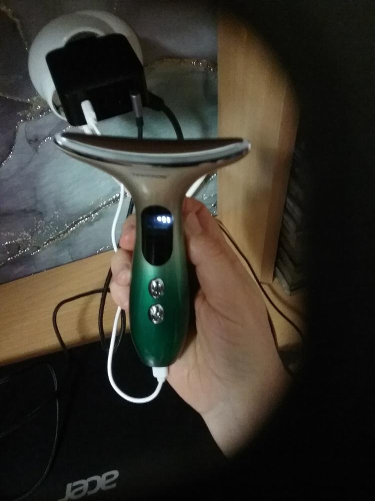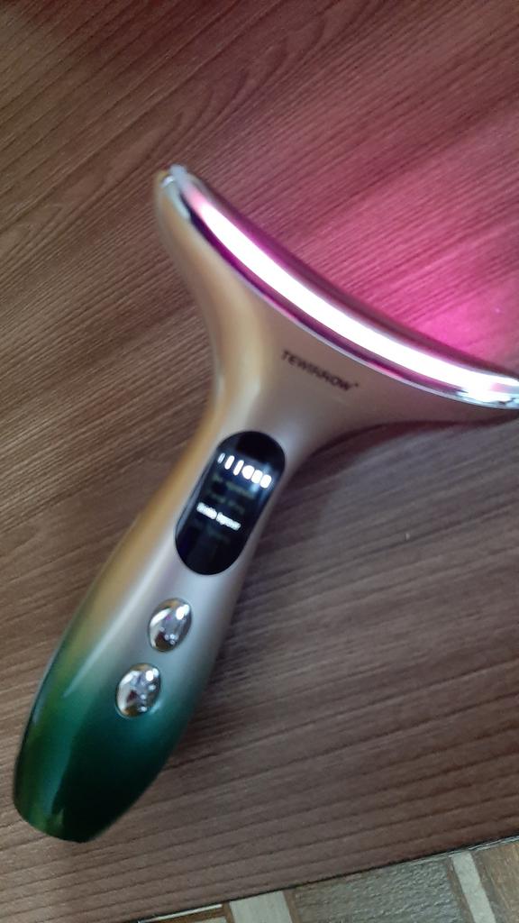 Looks very good. Useful. But from the beginning I didn't like some noises inside, like a rattle. You can hear that on the video. I only used 5 times, charges slowly and works for a short time when touching skin, unfortunately other colors purple and blue light I only used 3 times. At the red light turns off. I think there is a defect somewhere. I would like to exchange if possible. Or refund the money please. I order a new device. Thank you in advance. Attached you send video that I have only received and current. I only put 2 stars because of defect