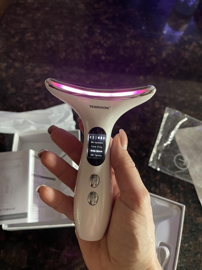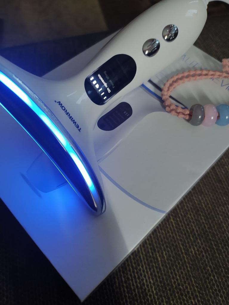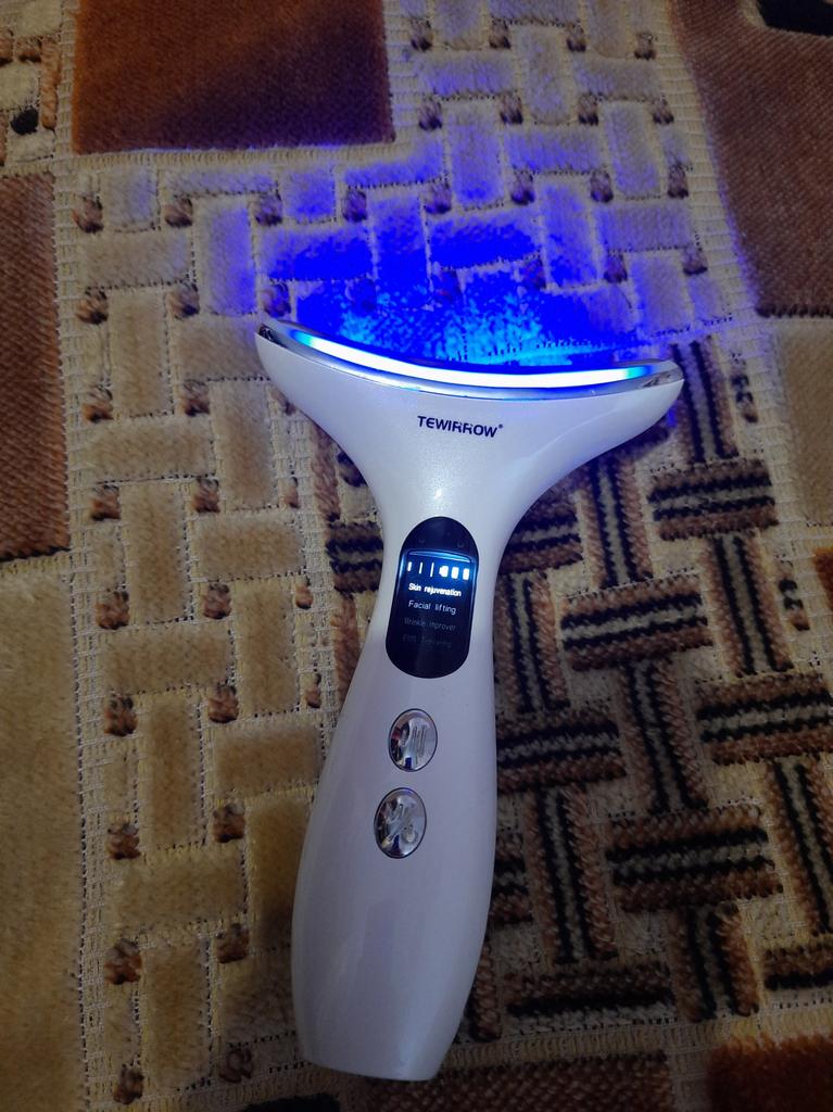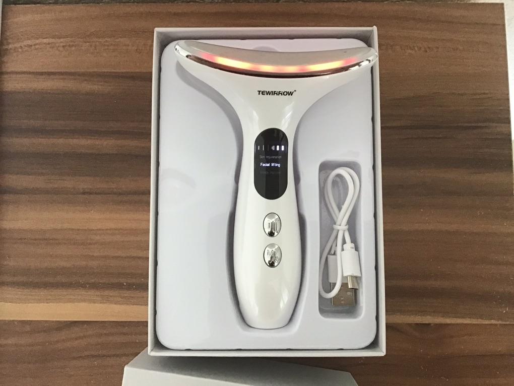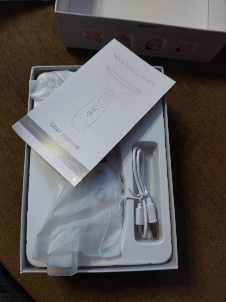 Looks very good. Useful. But from the beginning I didn't like some noises inside, like a rattle. You can hear that on the video. I only used 5 times, charges slowly and works for a short time when touching skin, unfortunately other colors purple and blue light I only used 3 times. At the red light turns off. I think there is a defect somewhere. I would like to exchange if possible. Or refund the money please. I order a new device. Thank you in advance. Attached you send video that I have only received and current. I only put 2 stars because of defect